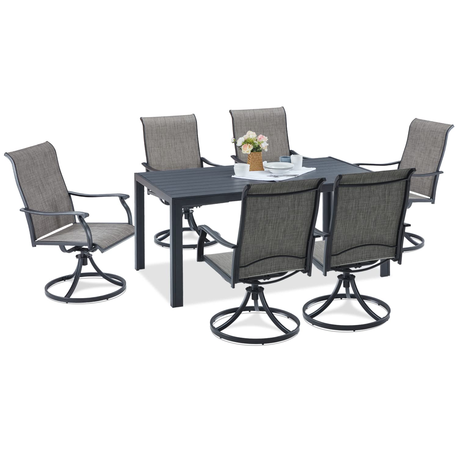 Vicllax 7-Piece Patio Dining Set, Outdoor Dining Table for 6 and Patio Swivel Chairs