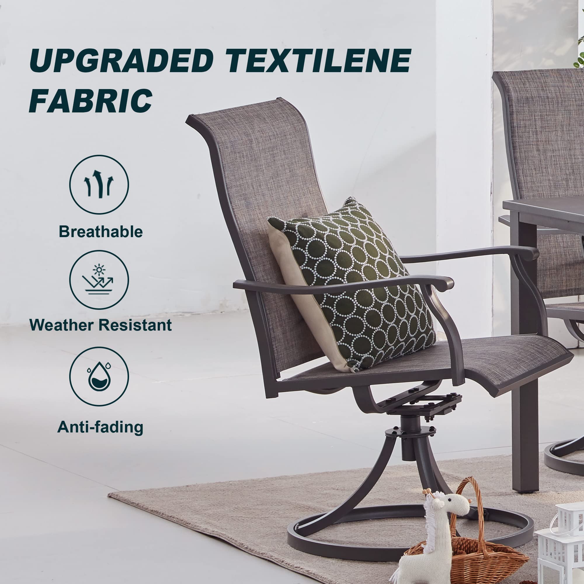 - 【Swivel Outdoor Chairs】Outdoor dining chairs perform a 360° spin. Sturdy chair's base allows the swivel chairs to rotate safely and smoothly. Durable easy-care and quick-drying fabric effortlessly blend in with any style of outdoor decor, fade and stain-resistant