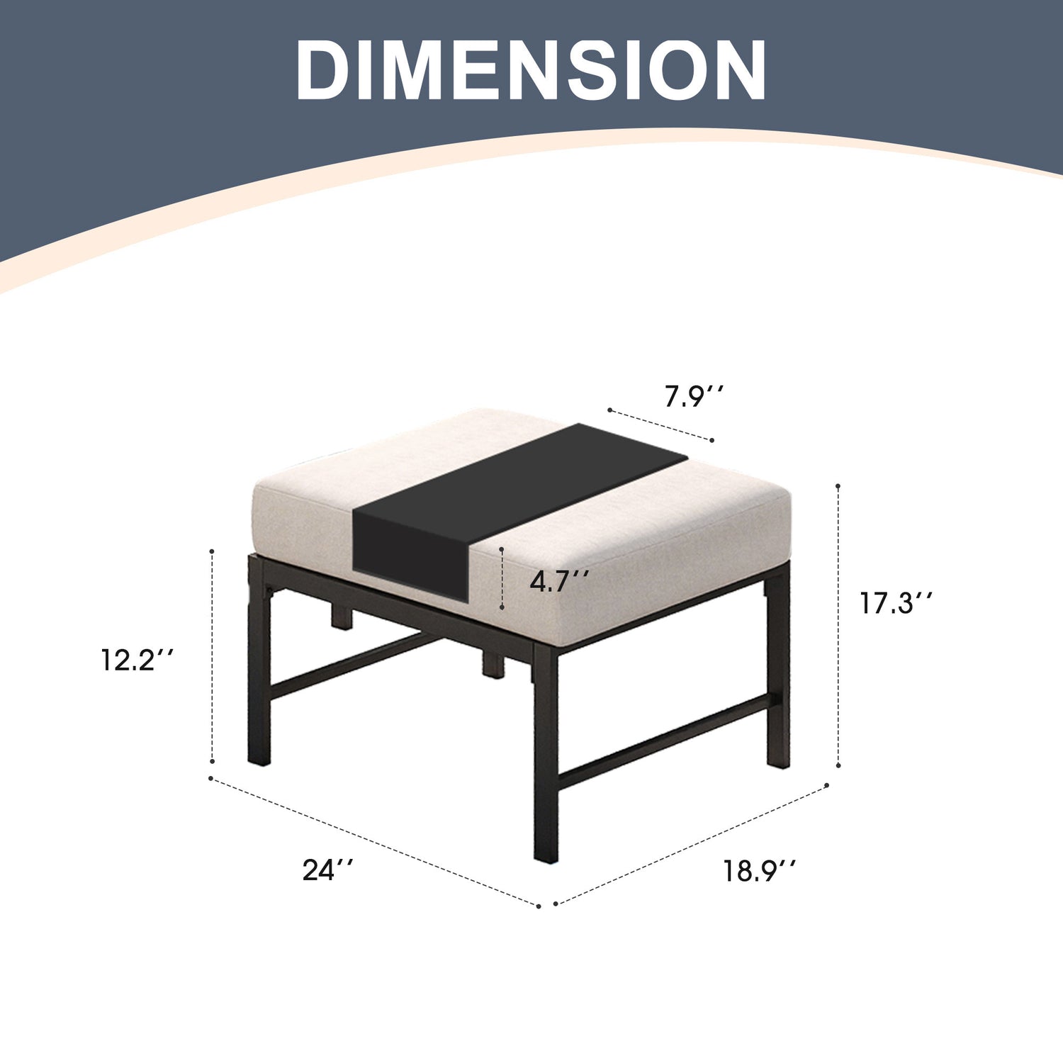 Ottoman: 24"W x 18.9"D x 17.3"H