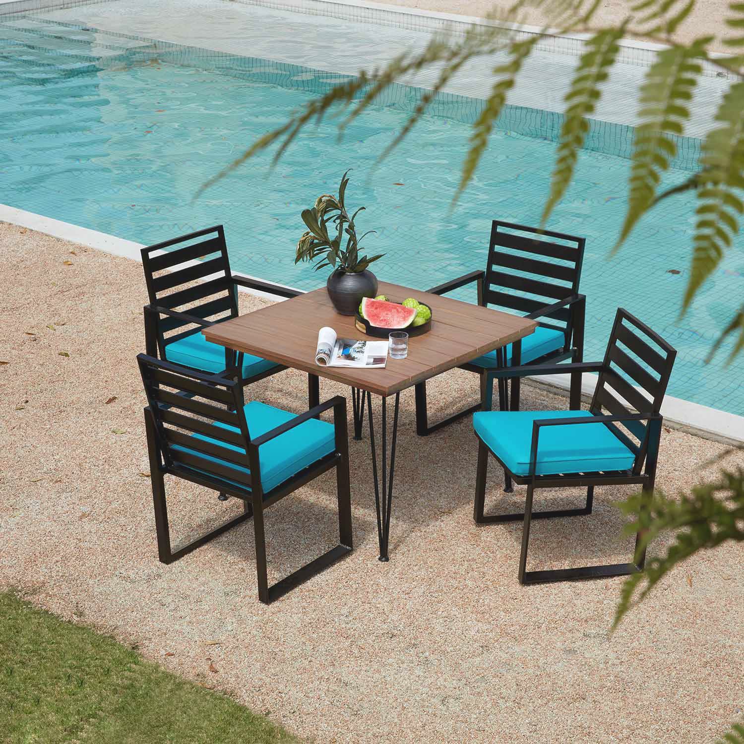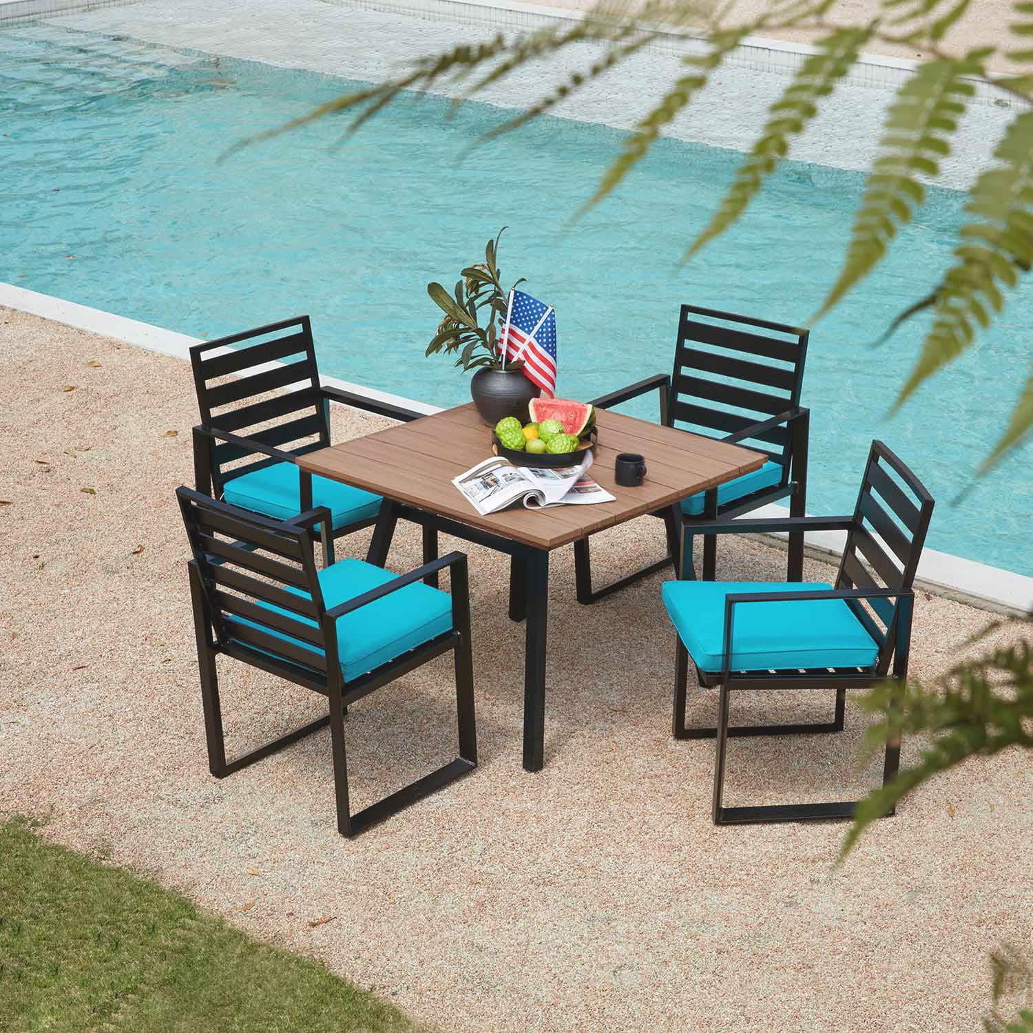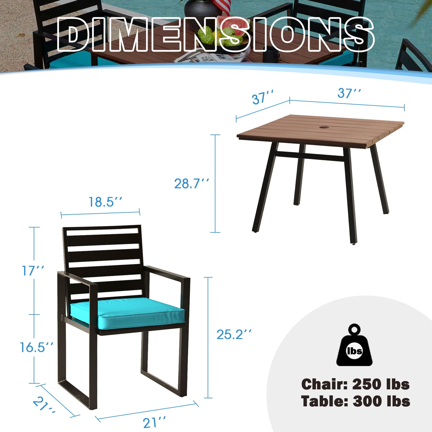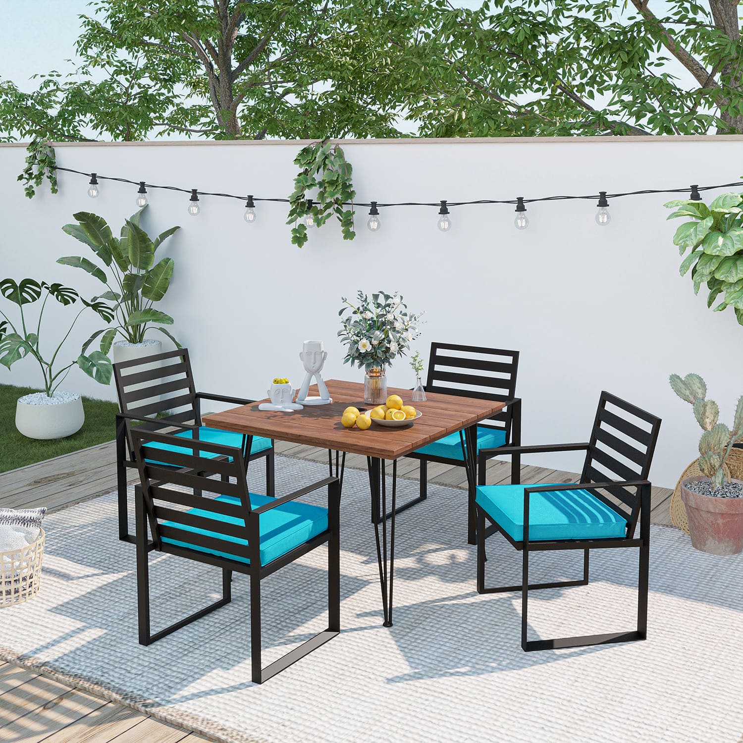 Vicllax 5 PCS Patio Dining Set, Outdoor Metal Table and Dining Chair with Cushion