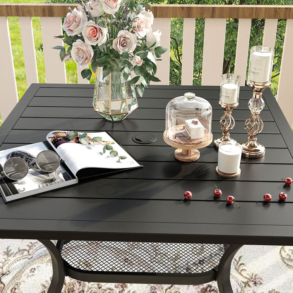 Durable Metal Construction: Crafted for longevity, the metal table ensures stability and resilience against outdoor elements, promising enduring outdoor enjoyment.