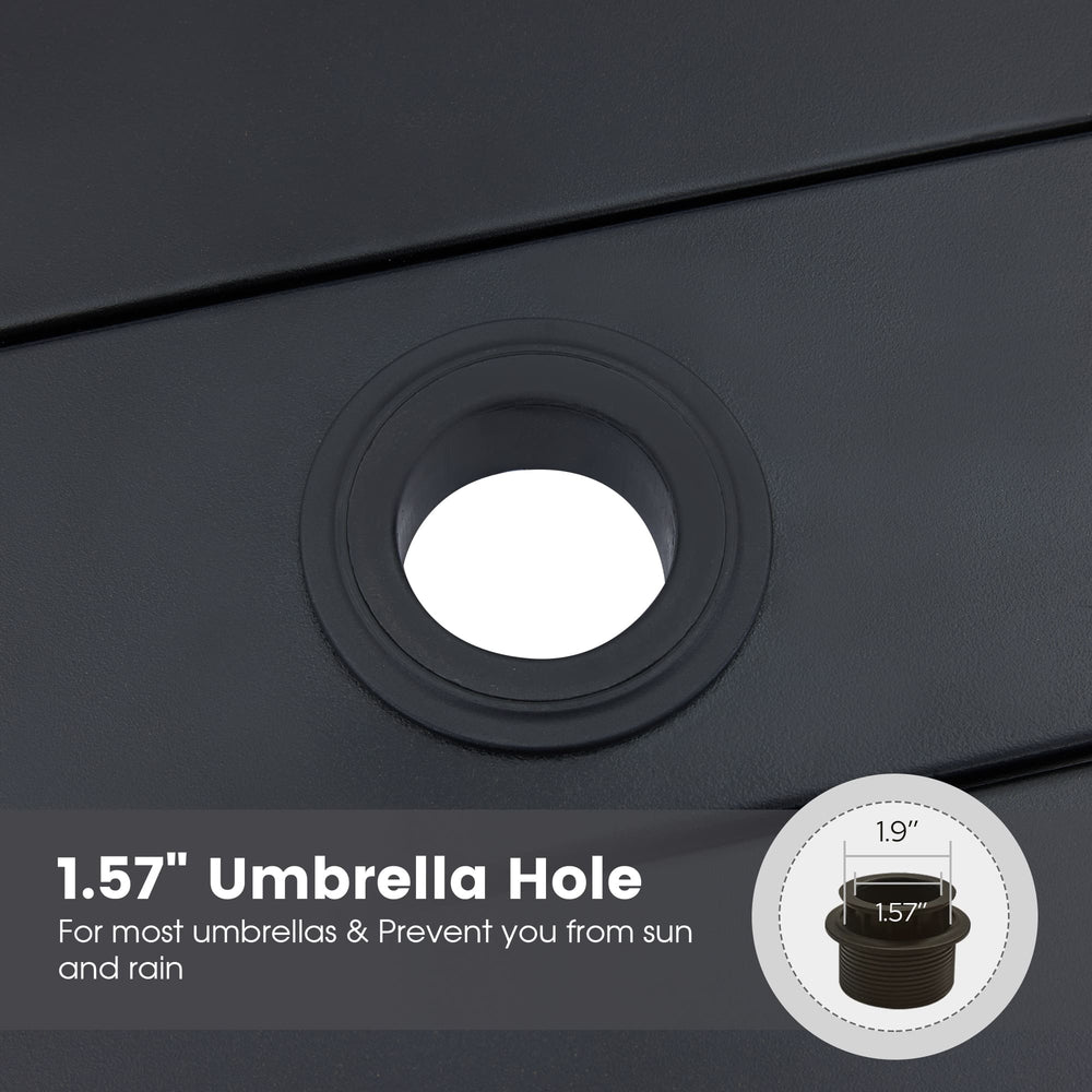 Be prepared for any outdoor occasion with the commonly used umbrella hole, ensuring you're covered, rain or shine.