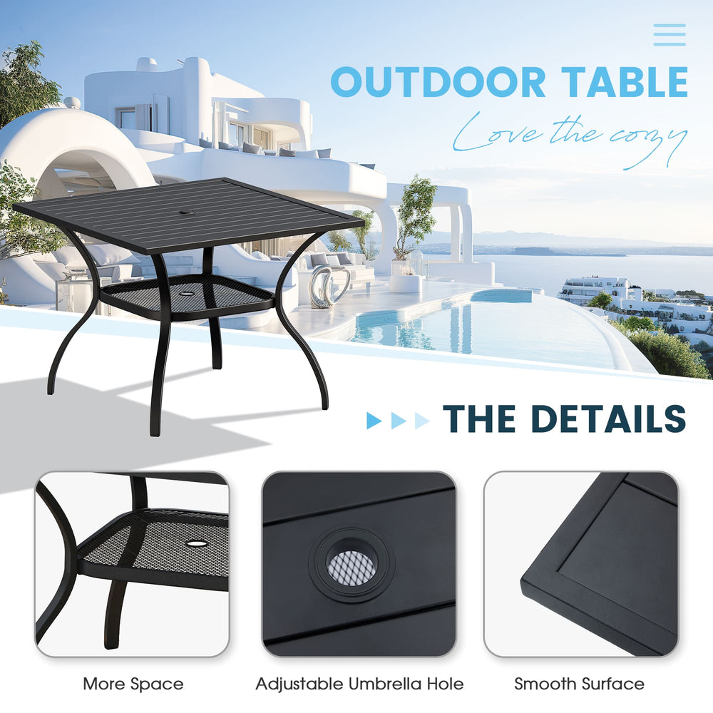 Vicllax 5 Pieces Outdoor Dining Set, 37.8" Square Metal Table and Stackable Sling Chairs