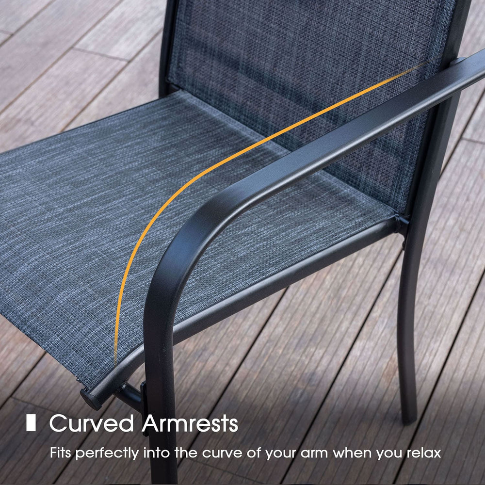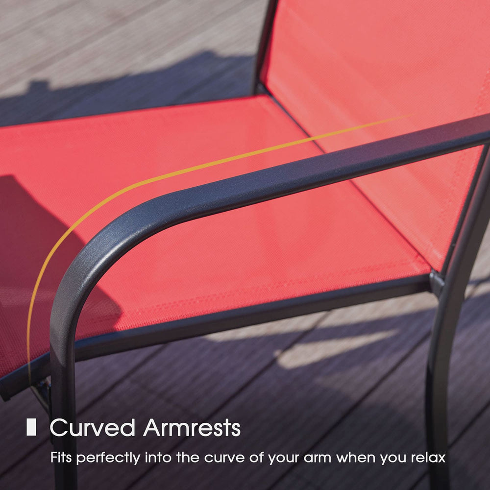 Comfortable Textilene Armchairs: Designed with comfort in mind, the Textilene armchairs offer ergonomic seating, making outdoor dining a delightful experience.