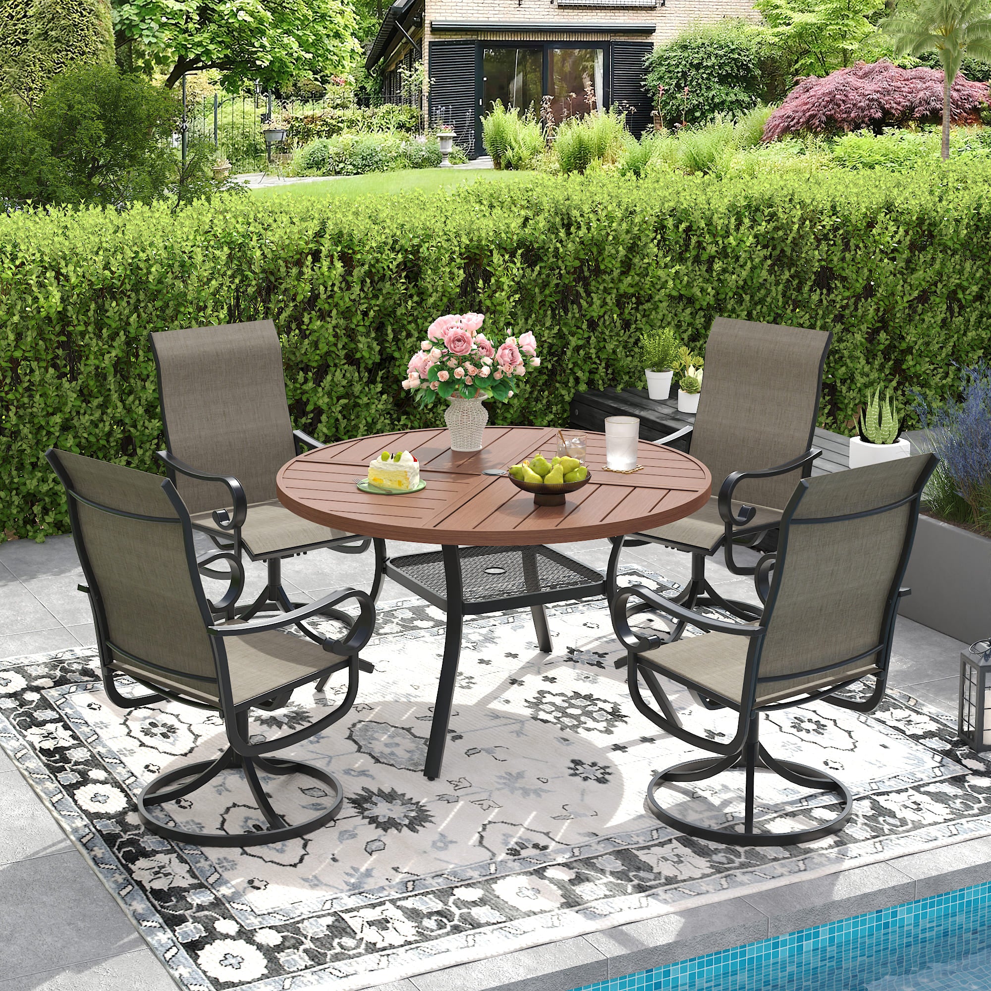 Black Table & Brown ChairsBlack Table & Blue ChairsWalnut Wood Grain Table & Brown ChairSandshell Color Table & Sandshell ChairsGrey wood-like Table & Sandshell Chair+ 2 more
