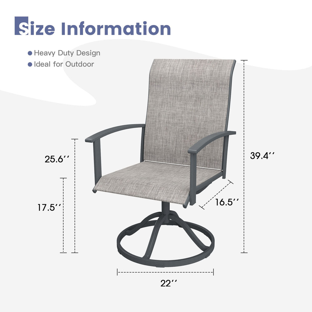 Durability and Comfort: Vicllax outdoor swivel chairs feature high-quality Textlene fabric, offering exceptional durability and resilience. Even with prolonged use, the fabric resists sagging and maintains its comfort and support. Enjoy long-lasting comfort through all seasons, without worrying about shape loss or structural changes.