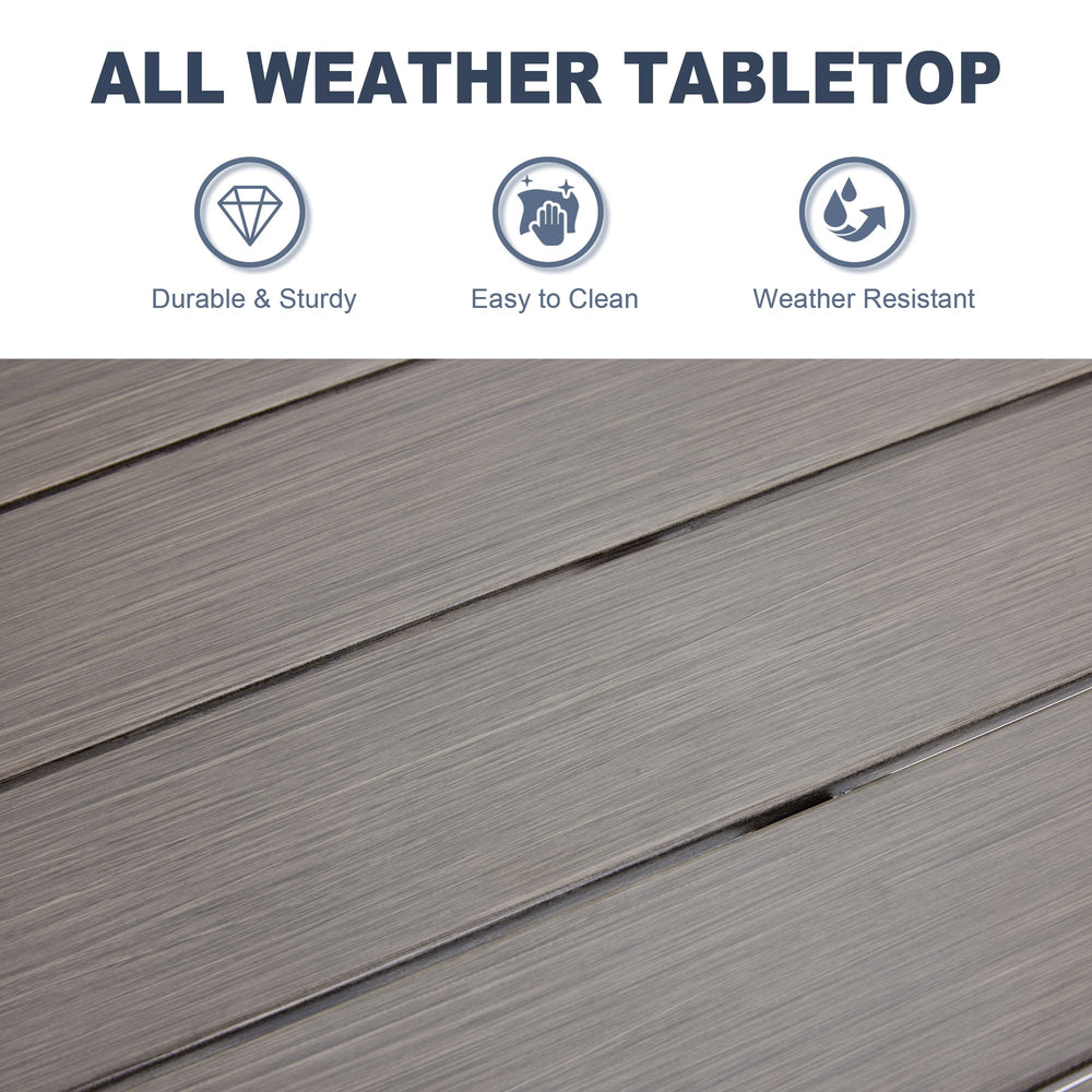 - Classic Shape: Featuring a timeless design, the table complements various outdoor settings with its versatile shape.