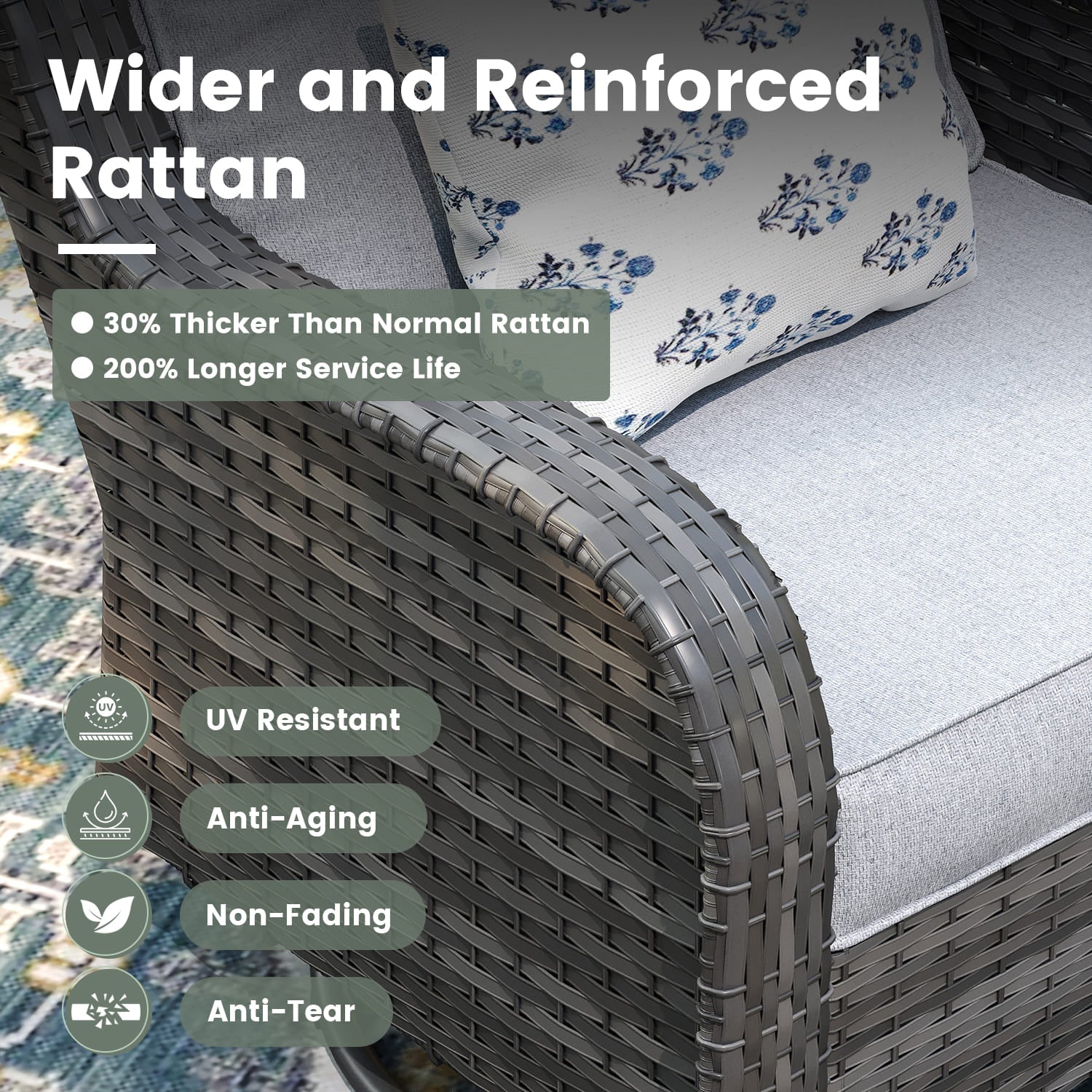 Hand-woven with high-quality all-weather resin wicker, these furniture pieces maintain a sophisticated and appealing look. The craftsmanship involved in hand-weaving ensures that each piece is meticulously constructed, resulting in a high level of detail and consistency that enhances the overall aesthetic.
