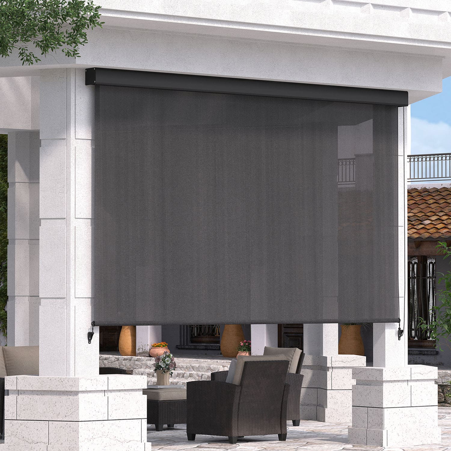 Vicllax Roller Shade, Patio Roll Up Sun Blocking Roller Shade with Aluminum Valance