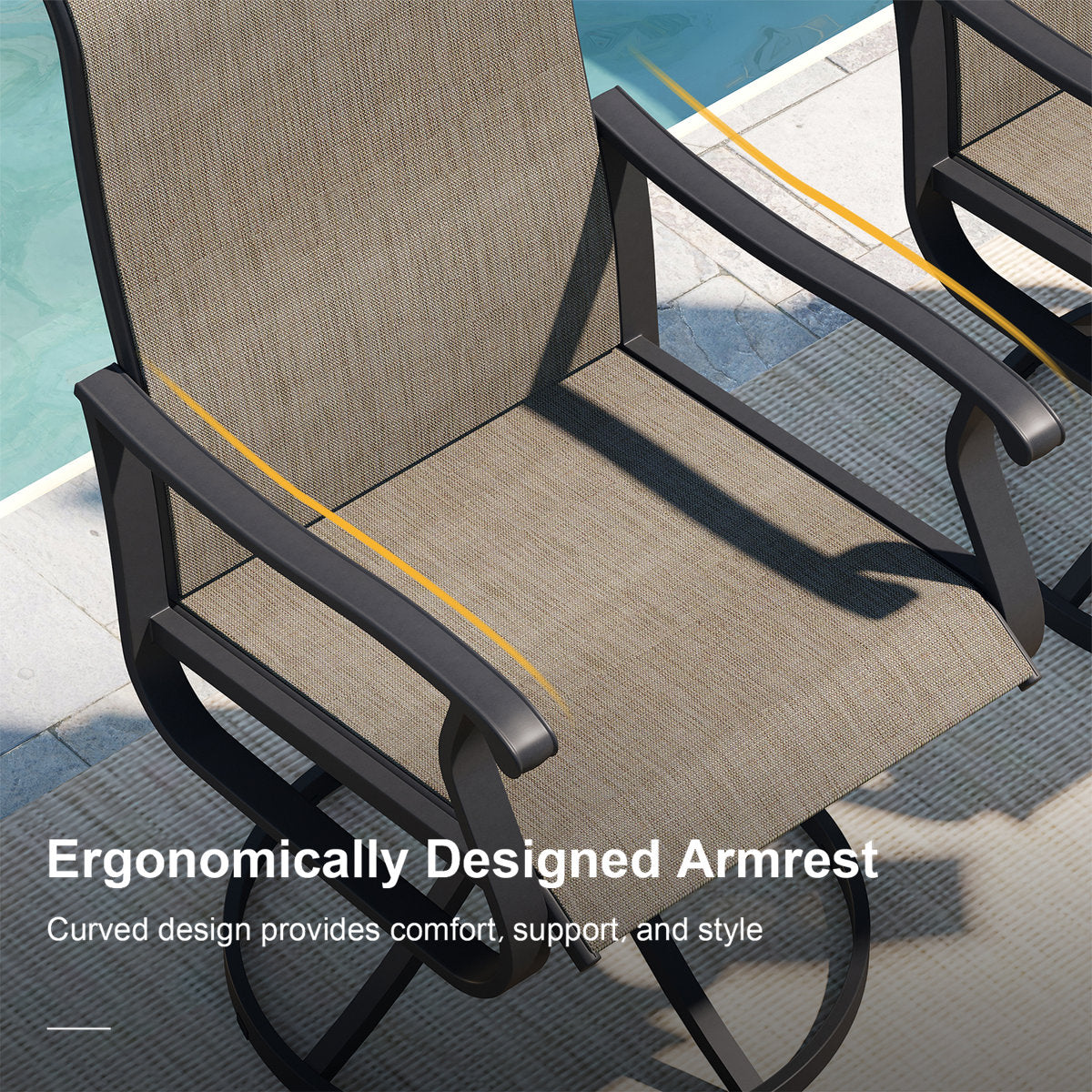 Vicllax Juego de comedor de exterior de 7 piezas con mesa rectangular de metal y sillas giratorias de textileno