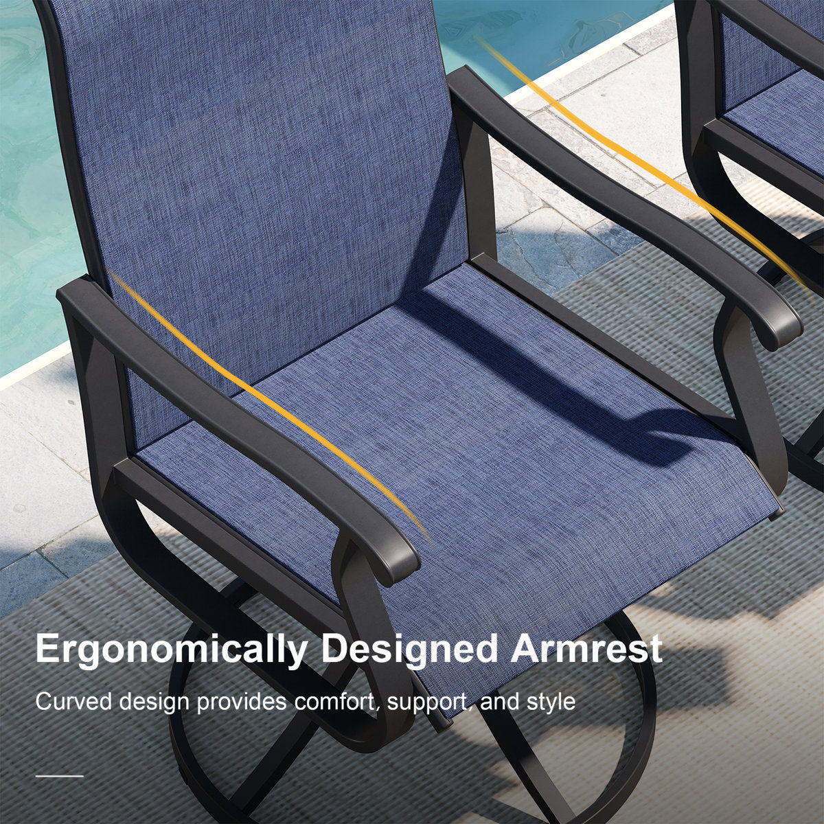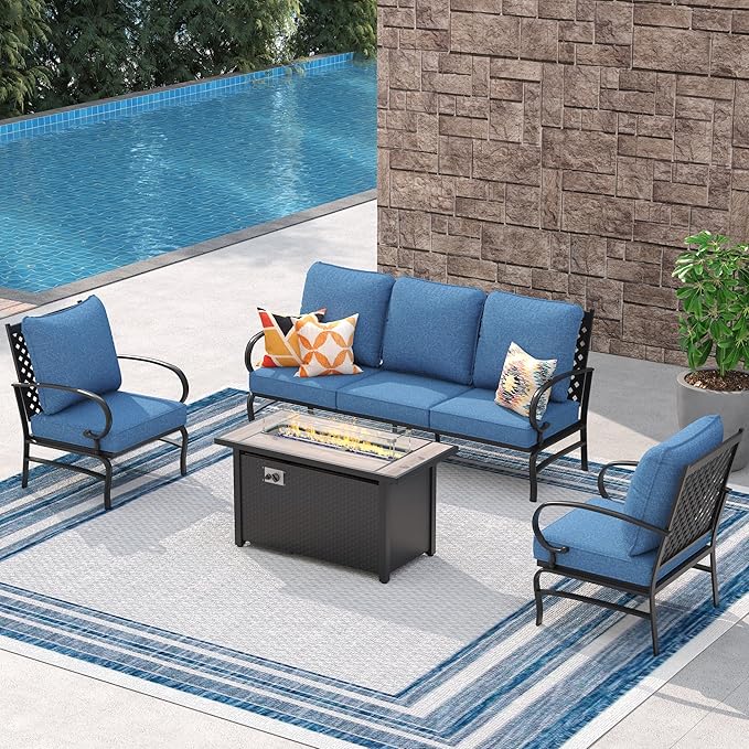 Vicllax Juego de comedor para exterior de 5 piezas con mesa cuadrada de metal de 42" y sillas de textileno