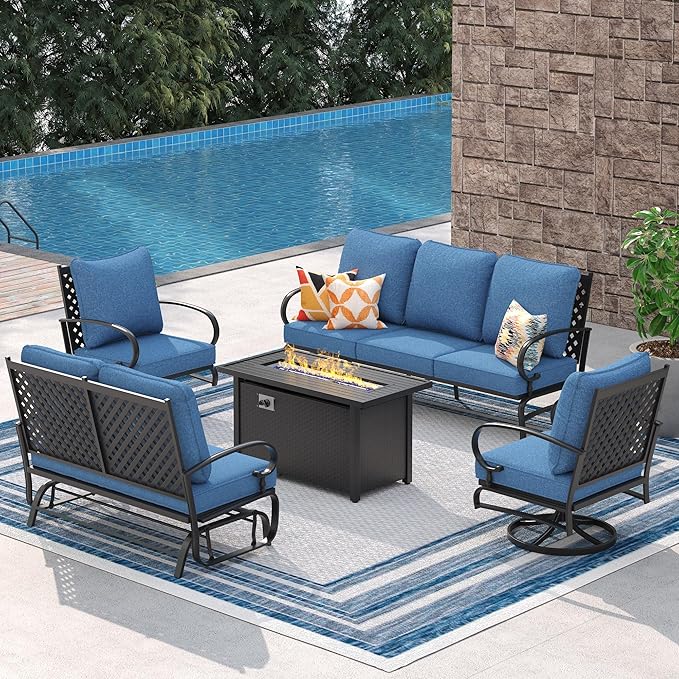 VICLLAX Patio 7 Pieces Outdoor Dining Set, 63" Rectangular Metal Dining Table and Swivel Chairs of 6