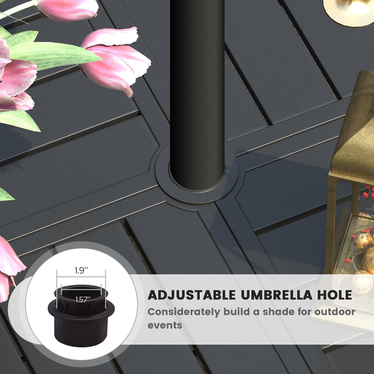 Mesa de comedor de escritorio Vicllax para exteriores de metal negro similar a la madera