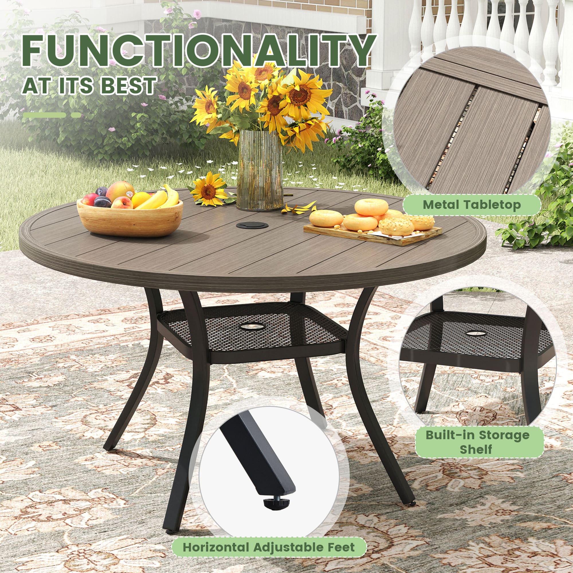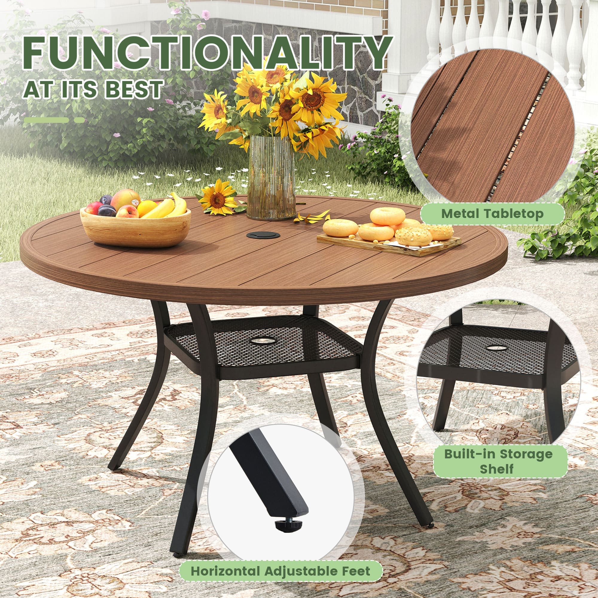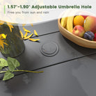 - 【Agujero para sombrilla】 Mesa redonda para patio equipada con un orificio para sombrilla ajustable (de 1,57 a 1,9 pulgadas, cubierta para orificio incluida), que se abre para asegurar una sombrilla y proteger su comida y a sus invitados del sol brillante.