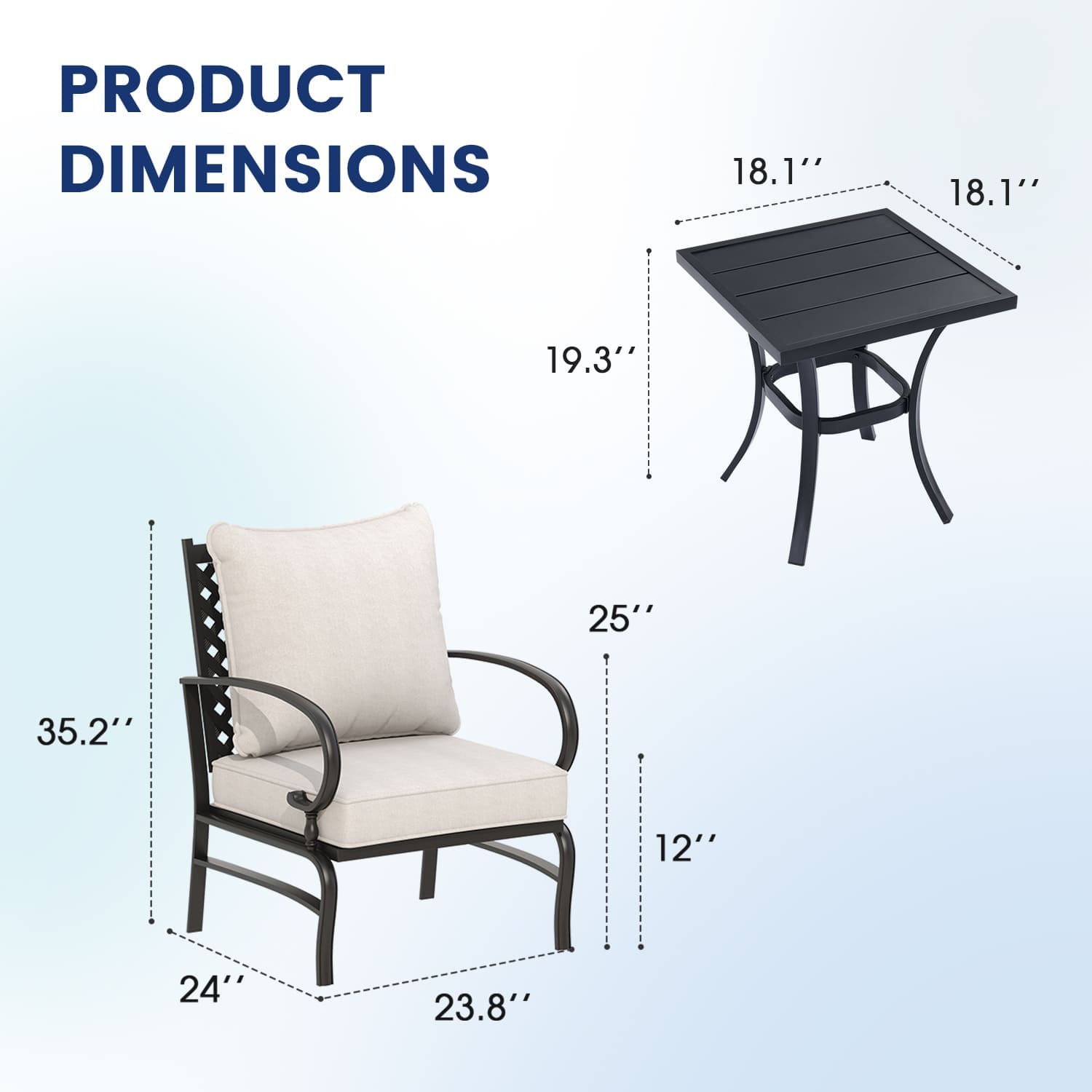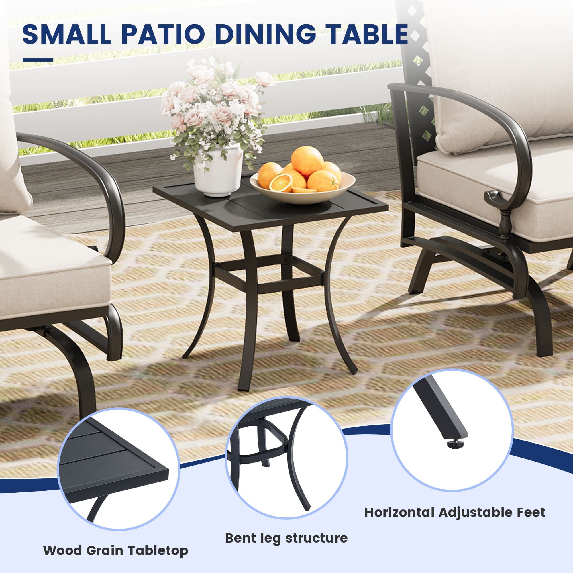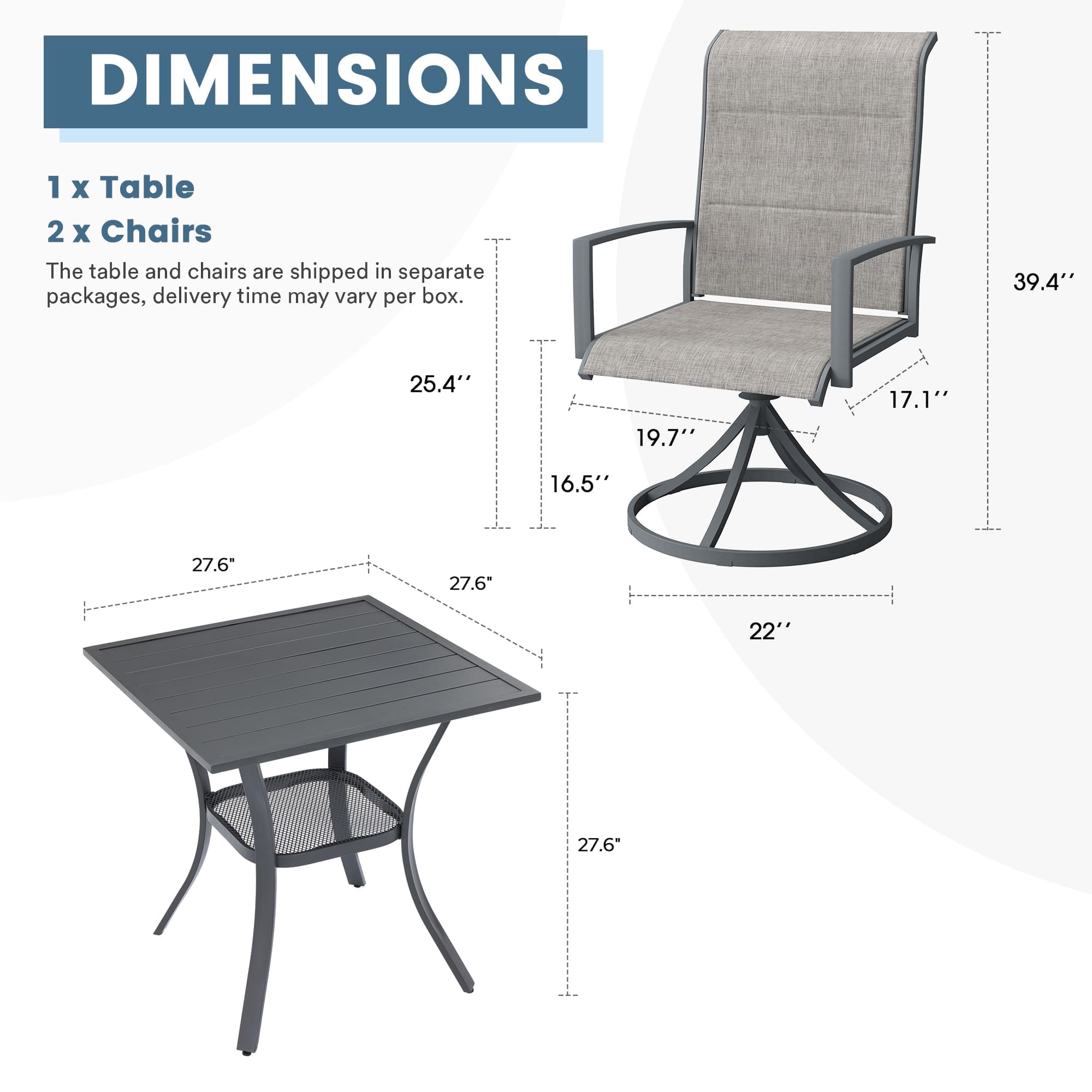 VICLLAX 3 Pieces Outdoor Dining Set, Set of 2 Patio Swivel Dining Chairs and 28" Square Table