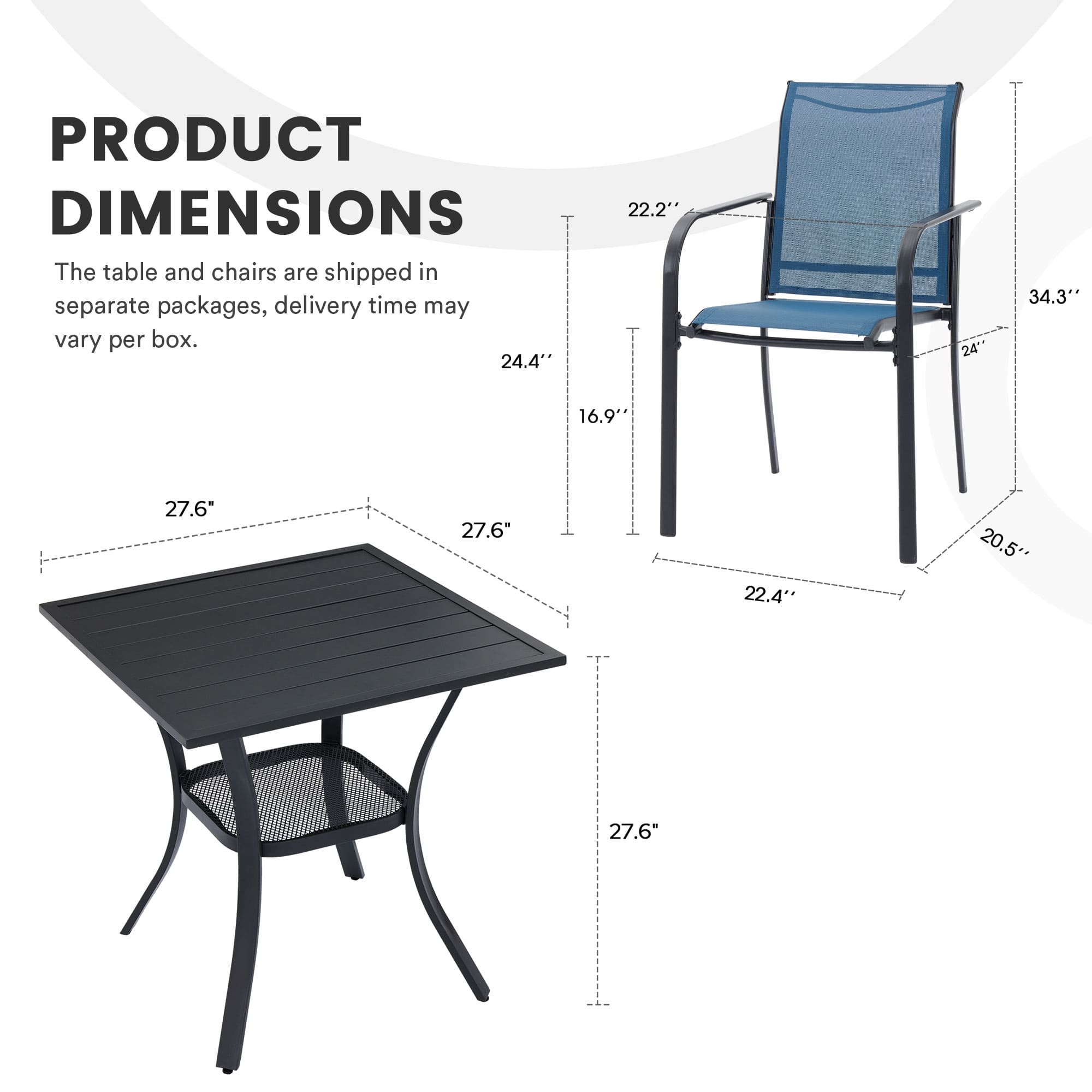 Vicllax 3-Piece Patio Bistro Set, Outdoor Stackable Sling Chairs and Black Metal Square Table