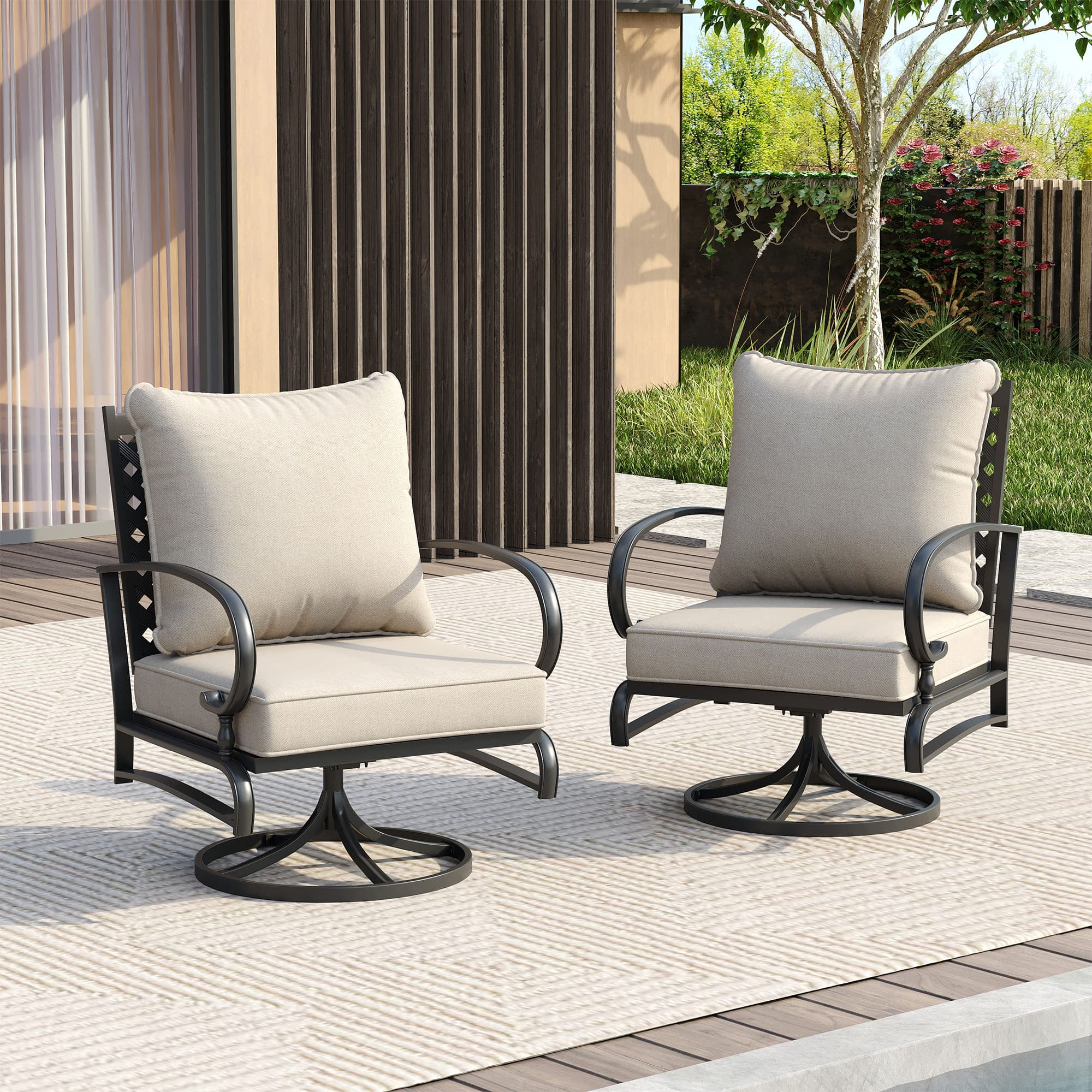 Vicllax 3-Piece Patio Bistro Set, Outdoor Swivel Chairs and Metal Round Table