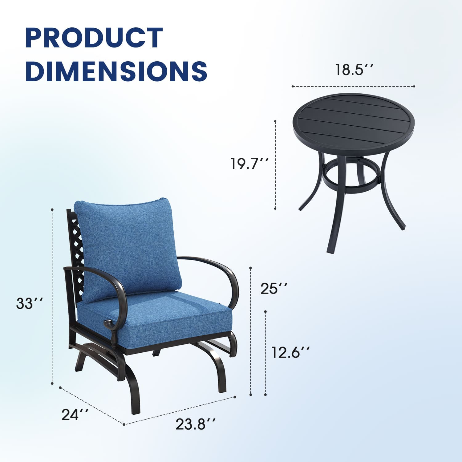 Vicllax Outdoor Patio Bistro Set of 2, Metal 27.6" Round Table and Stackable Dining Chair