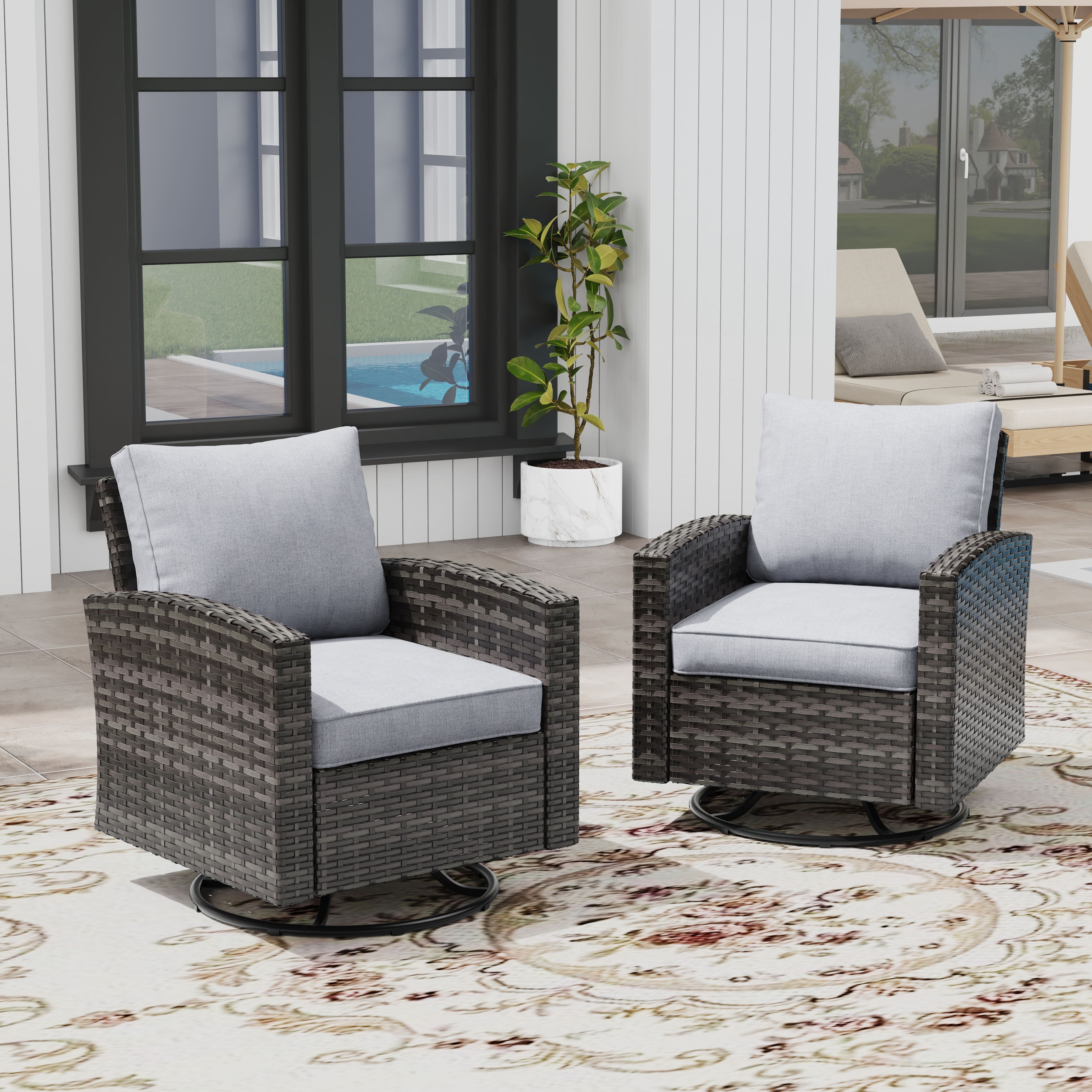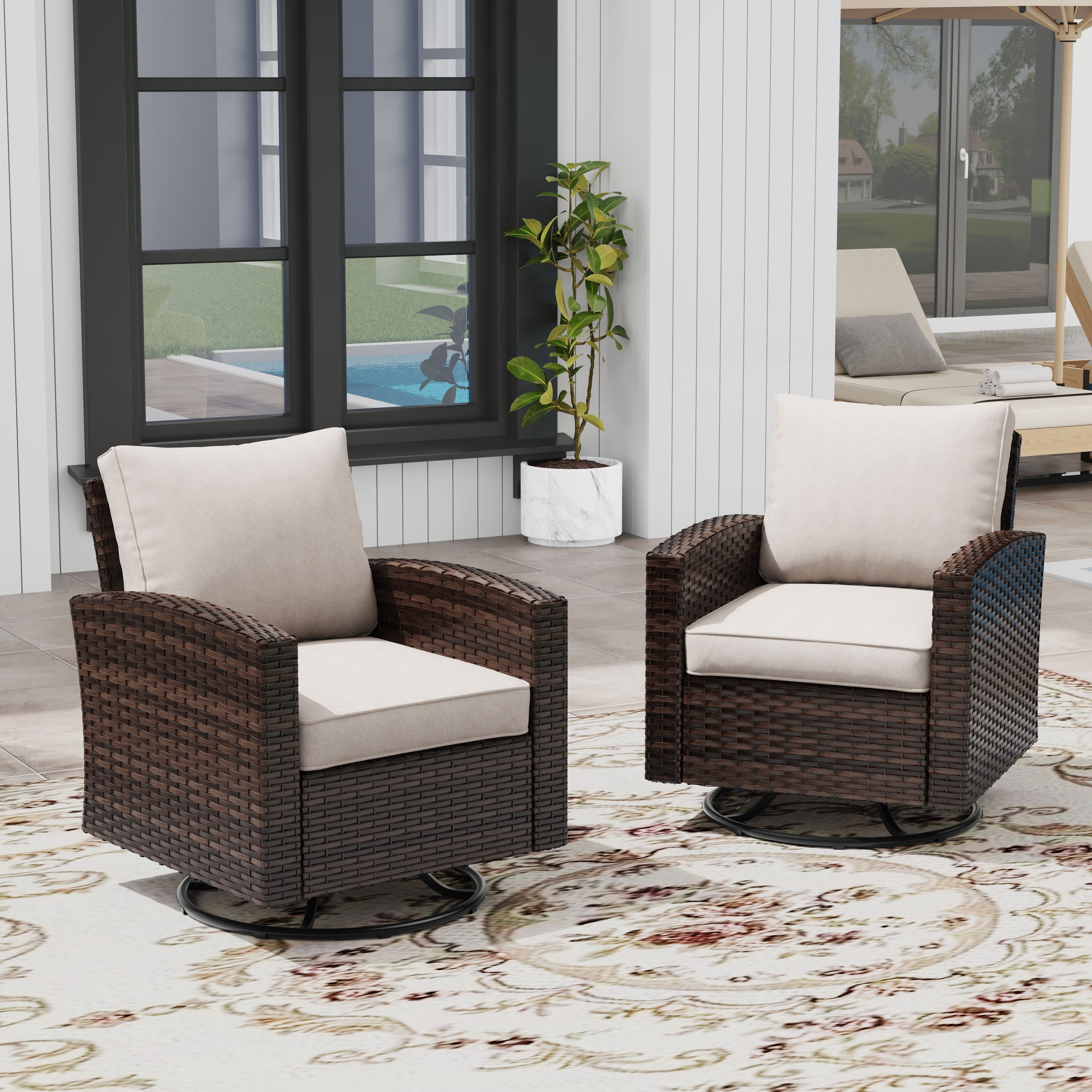 Vicllax Patio Sofa, Wicker Swivel Sofa Chairs, Rattan Sun-Drenched Lounge Seating