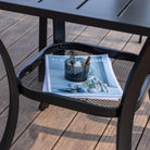 The table comes complete with a built-in shelf, transforming your dining space into a storage haven for your outdoor essentials.
