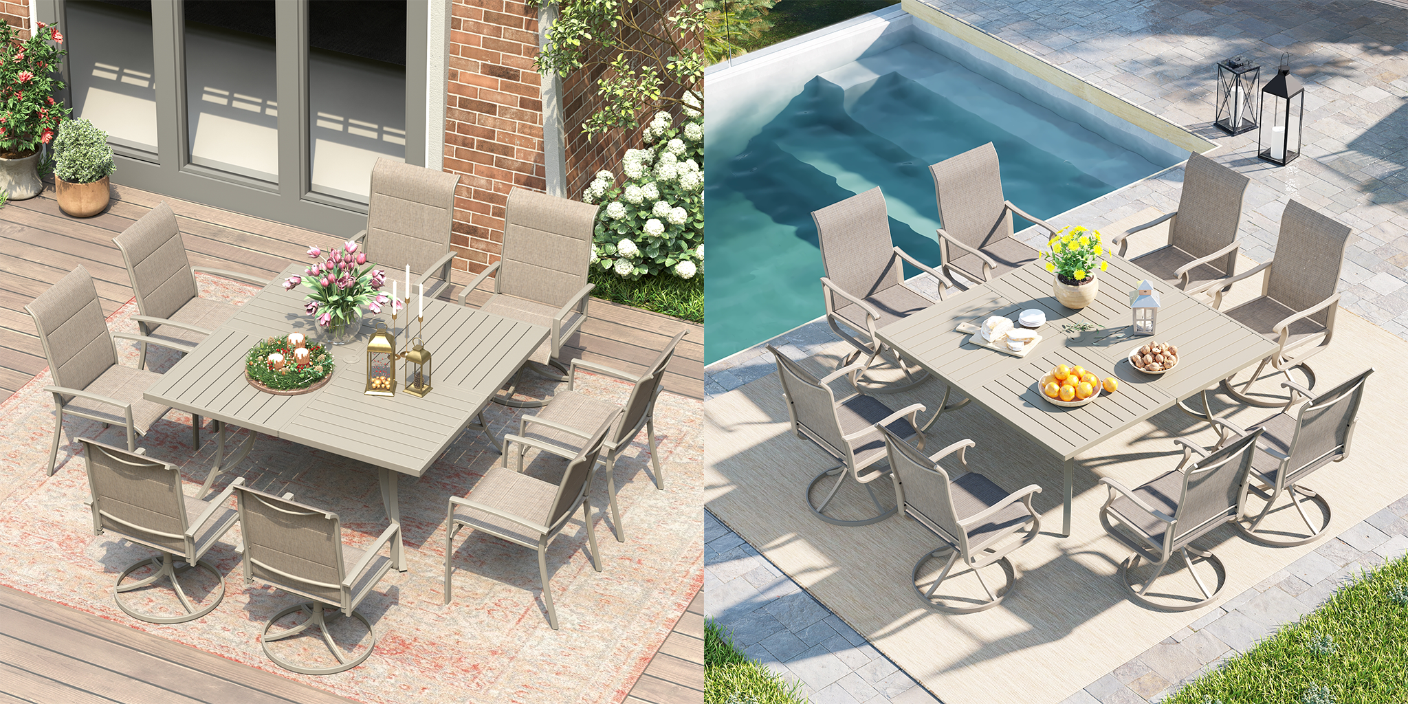 - Configuración fácil: El montaje es sencillo. Es hora de tener nuestro juego de comedor duradero y resistente para cenar al aire libre.
