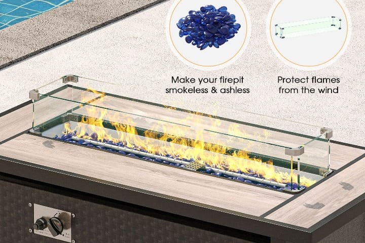 Safety and Style: Includes fire glass for heat retention and aesthetic appeal, along with a custom-fit steel cover for keeping the fire pit clean when not in use, ensuring a worry-free fire experience.