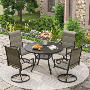 Vicllax Juego de comedor para exterior de 5 piezas con mesa redonda de metal de 42" y 4 sillas giratorias acolchadas