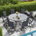 Vicllax Outdoor Dining Set for 8 People, Patio 63" Round Table with 8 Swivel Chairs Set