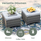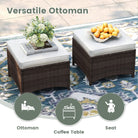- 【Padded Soft Cushion】The rattan outdoor conversation set features a 3.7" thick cushion. High-quality Olefin fabric which has excellent water-repellent and stain-resistant properties, making them perfect for outdoor use. Equipped with highly resilient foam padding, these cushions offer you a cozy seating experience. Convenient zippered design, easy to remove for cleaning.
