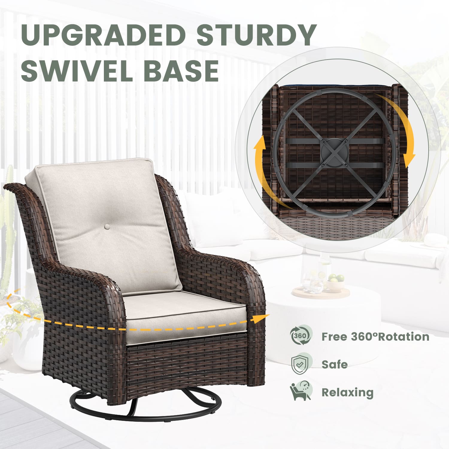 Vicllax Patio Wicker Oasis Lounge Set, Cushioned Sofa Swivel Chairs and Ottomans
