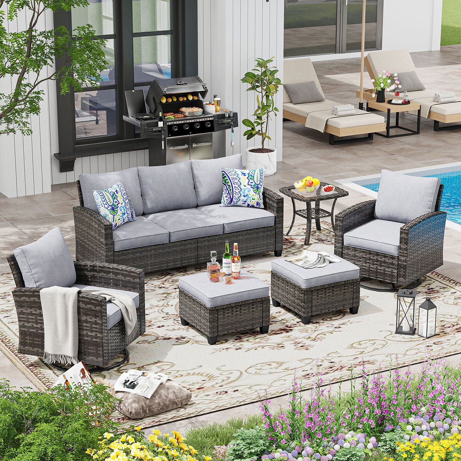 VICLLAX Versatile Wicker Patio Set: 5 Seater with Fire Table/Ottoman