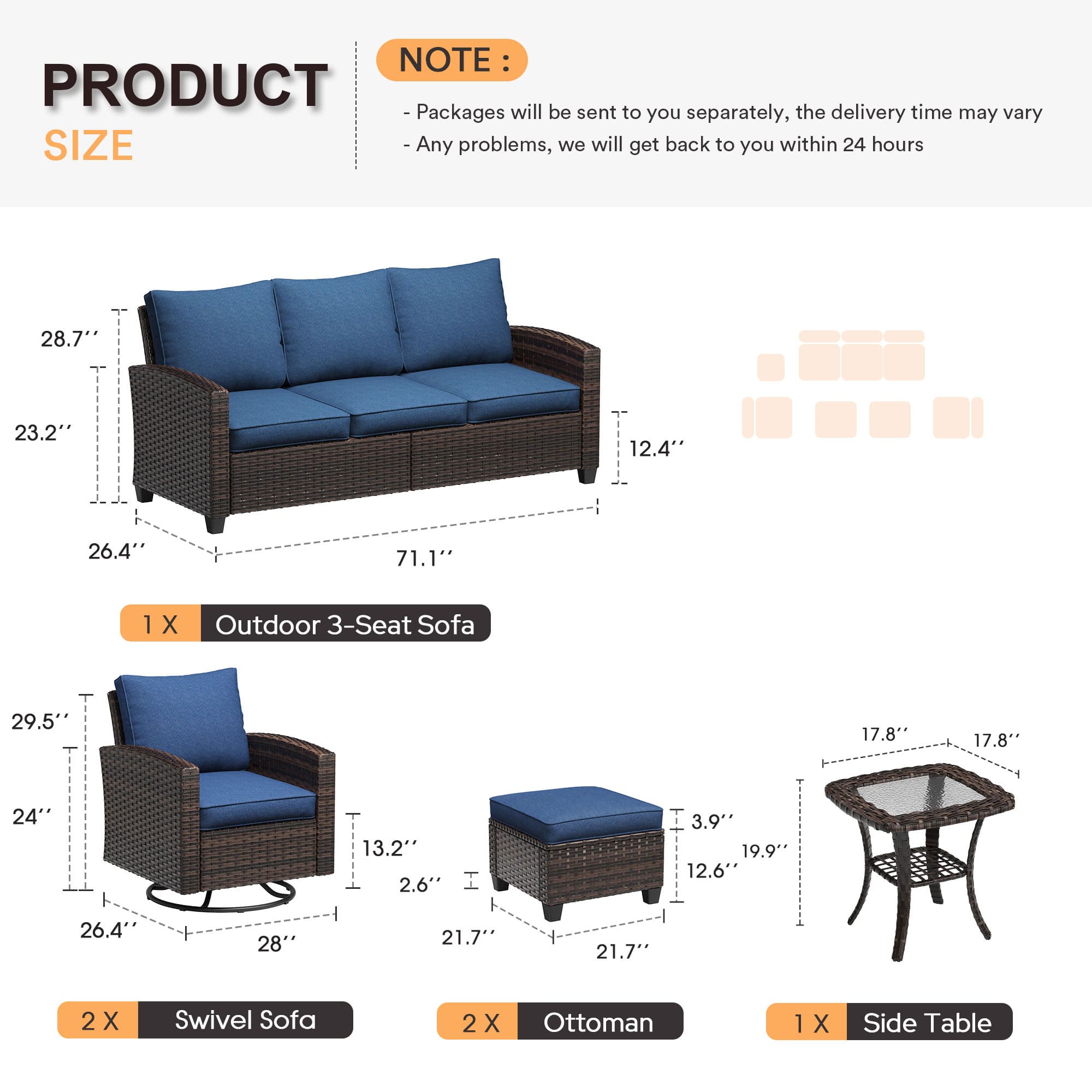 - 【Spacious Seating Space】The VICLLAX conversation set includes a 3-seat sofa, fire pit, single sofa chair, lover sofa and ottoman, catering to your family gatherings. High backrest is designed to offer exceptional support and comfort for your back. The stylish and modern shape complements your backyard, poolside or garden.