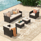 Vicllax Patio Furniture Set, Wicker Outdoor Conversation Set with Cushioned Sofa Chairs and Ottomans