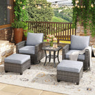 Vicllax 3/5 Pcs Garden Sofa Set, Wicker Outdoor Conversation Set with Sofa Chairs and Ottomans