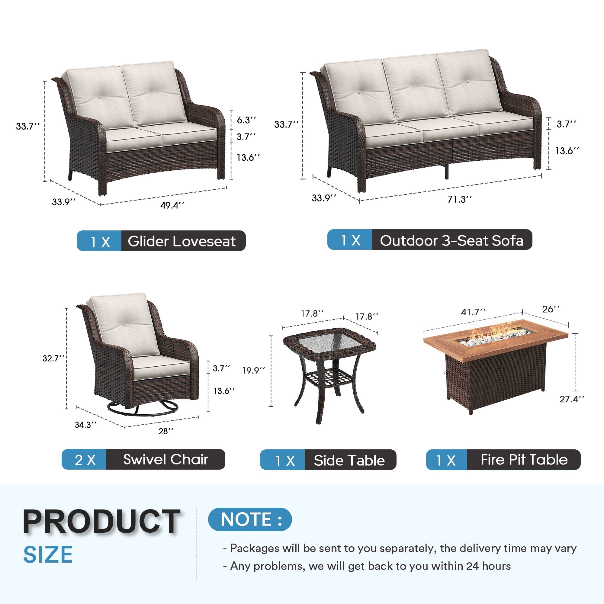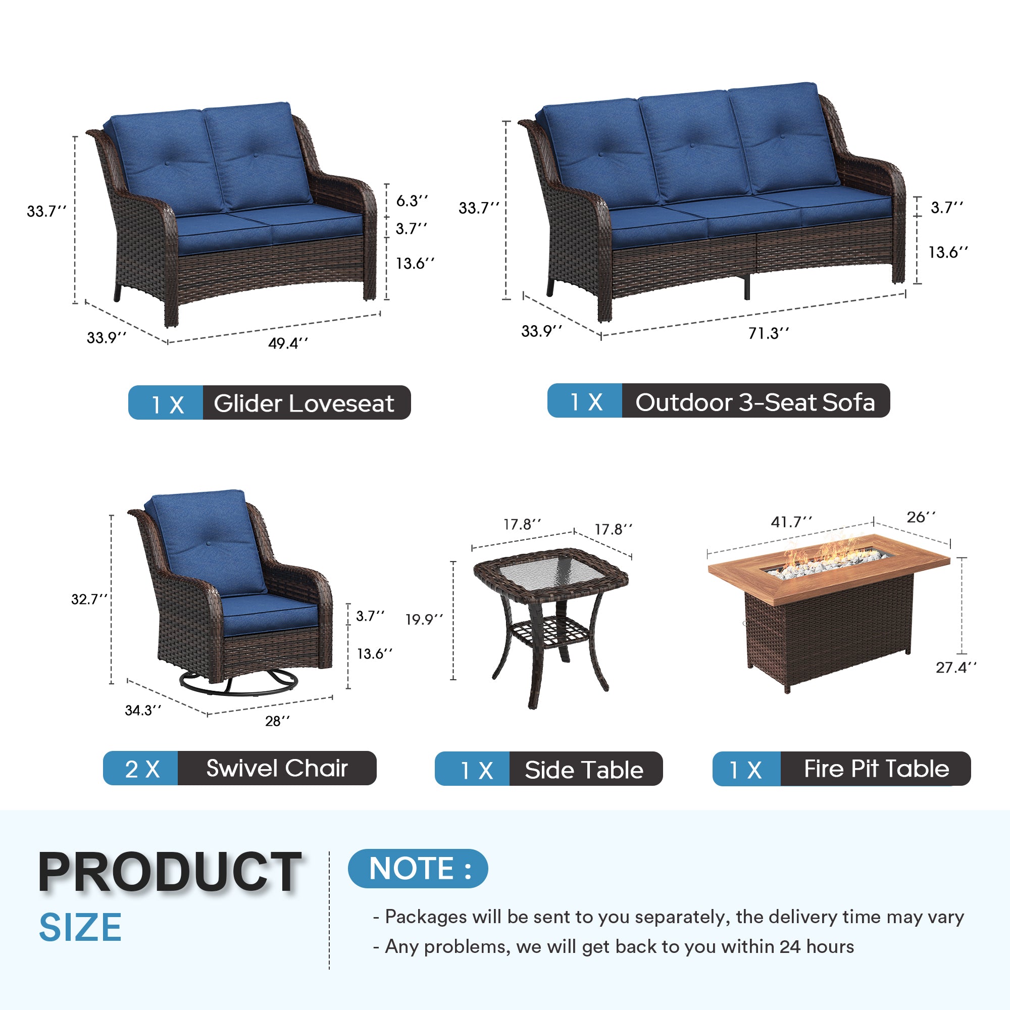 Vicllax 8-Piece Outdoor Wicker Patio Set with Fire Pit Table