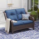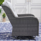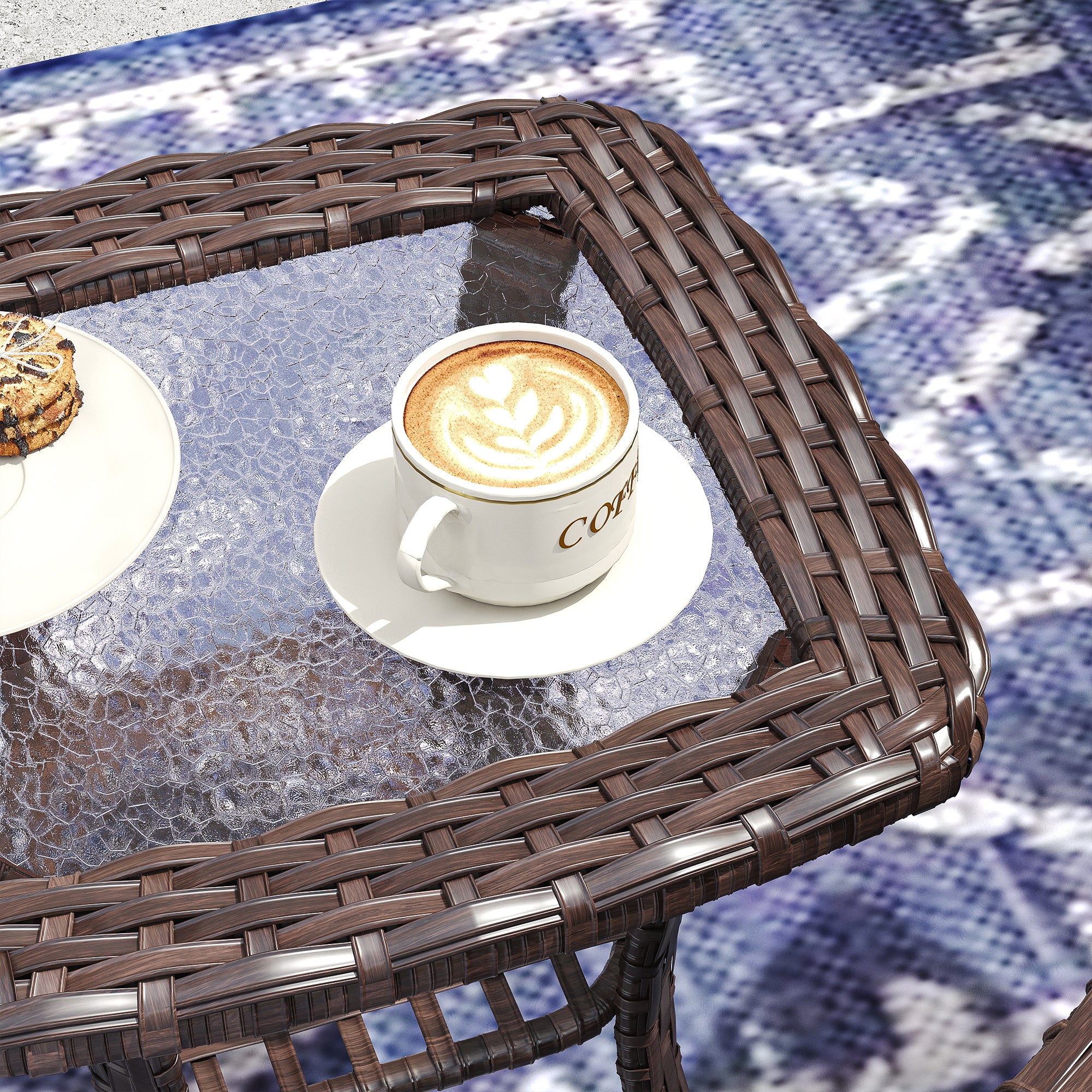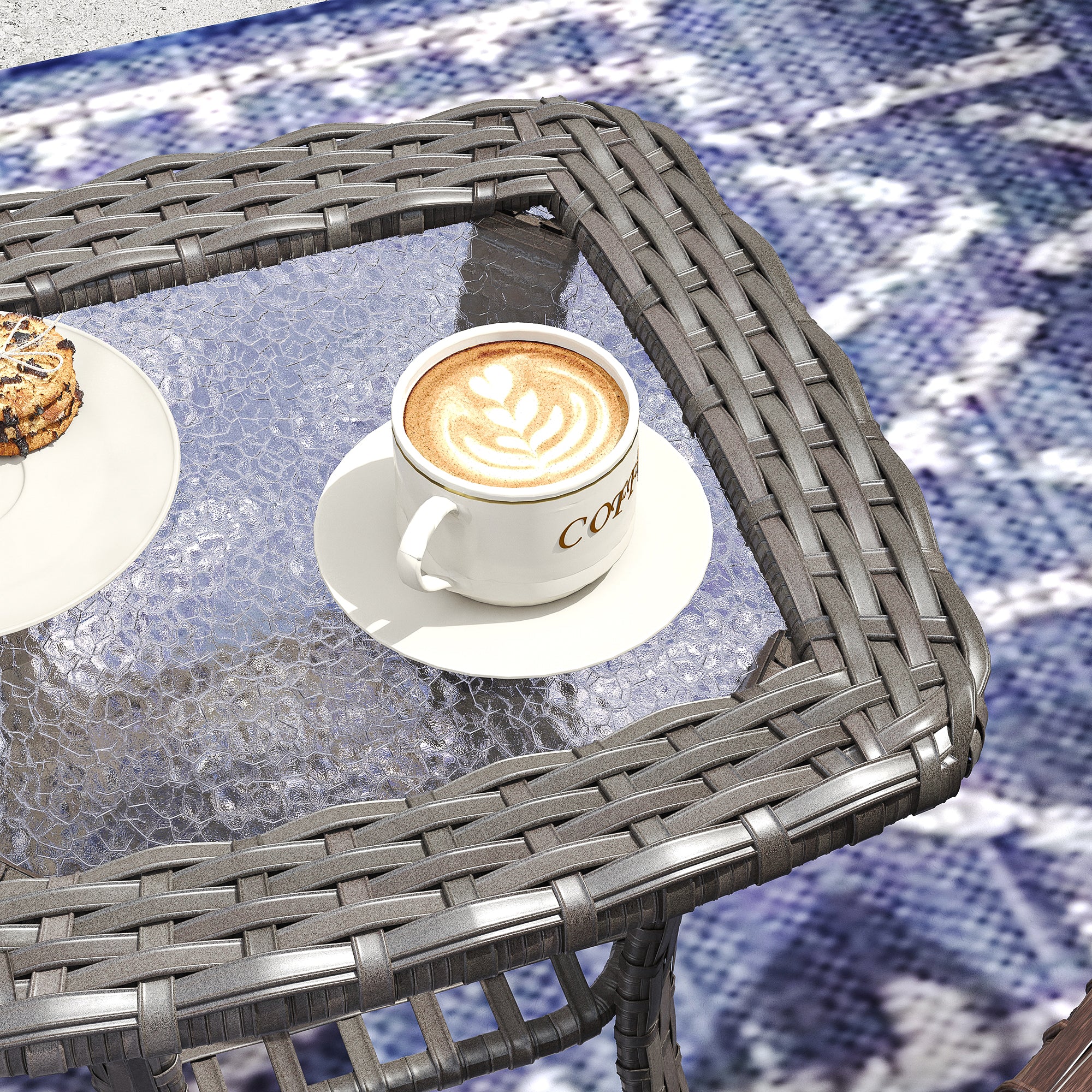 - Weatherproof materials: PE wicker + powder-coated steel frame
