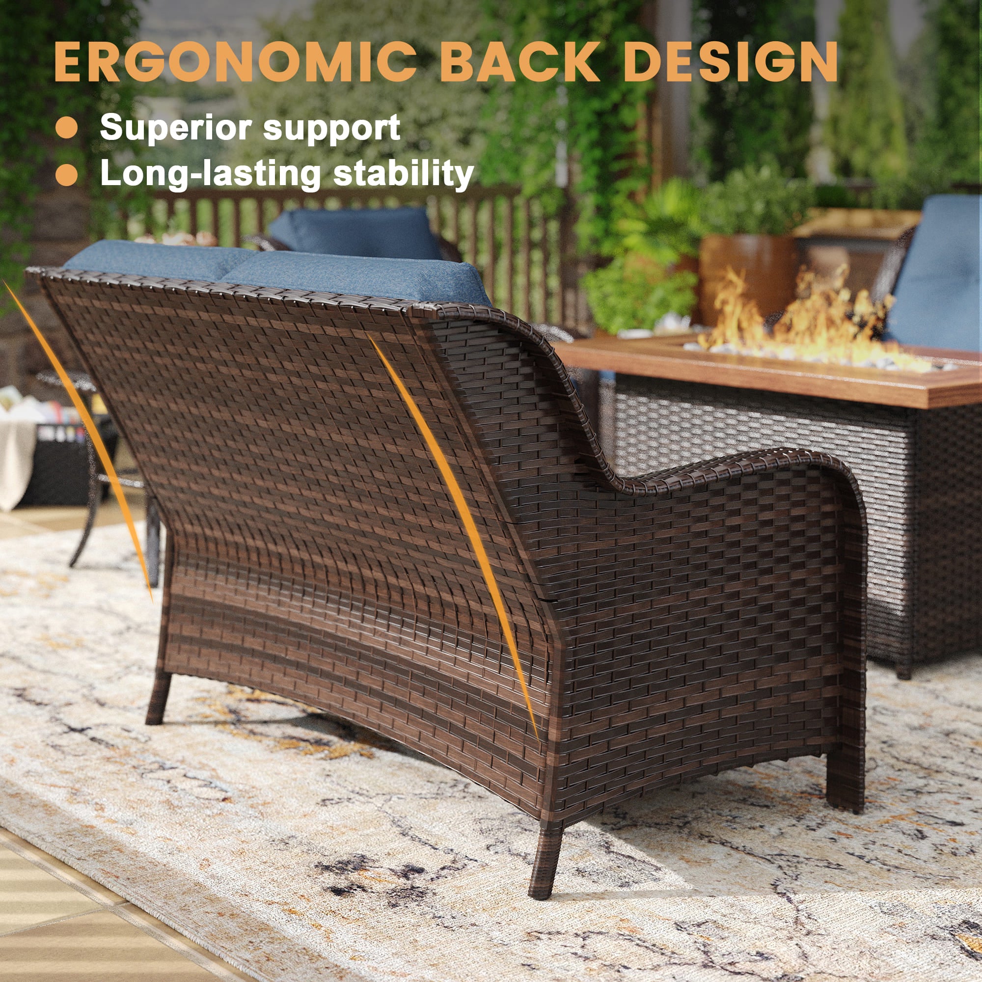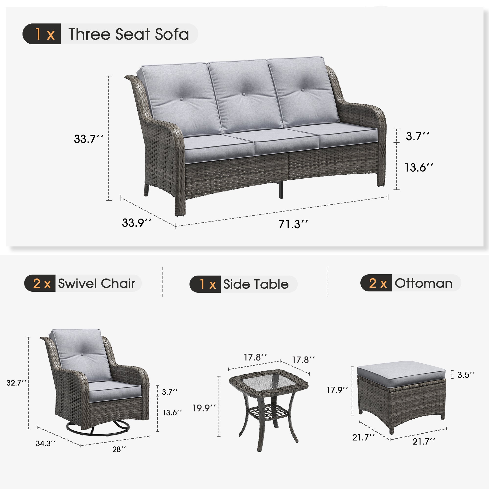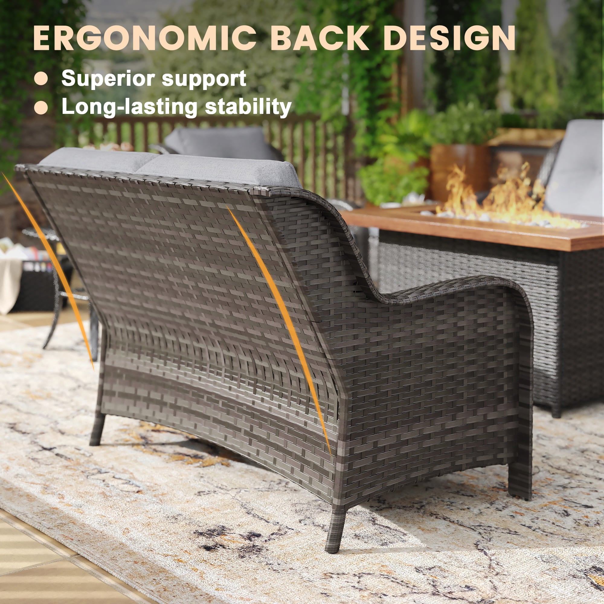 - 【Spacious Seating Space】The VICLLAX conversation set includes a 3-seat sofa, fire pit, single sofa chair, lover sofa and ottoman, catering to your family gatherings. High backrest is designed to offer exceptional support and comfort for your back. The stylish and modern shape complements your backyard, poolside or garden.