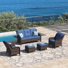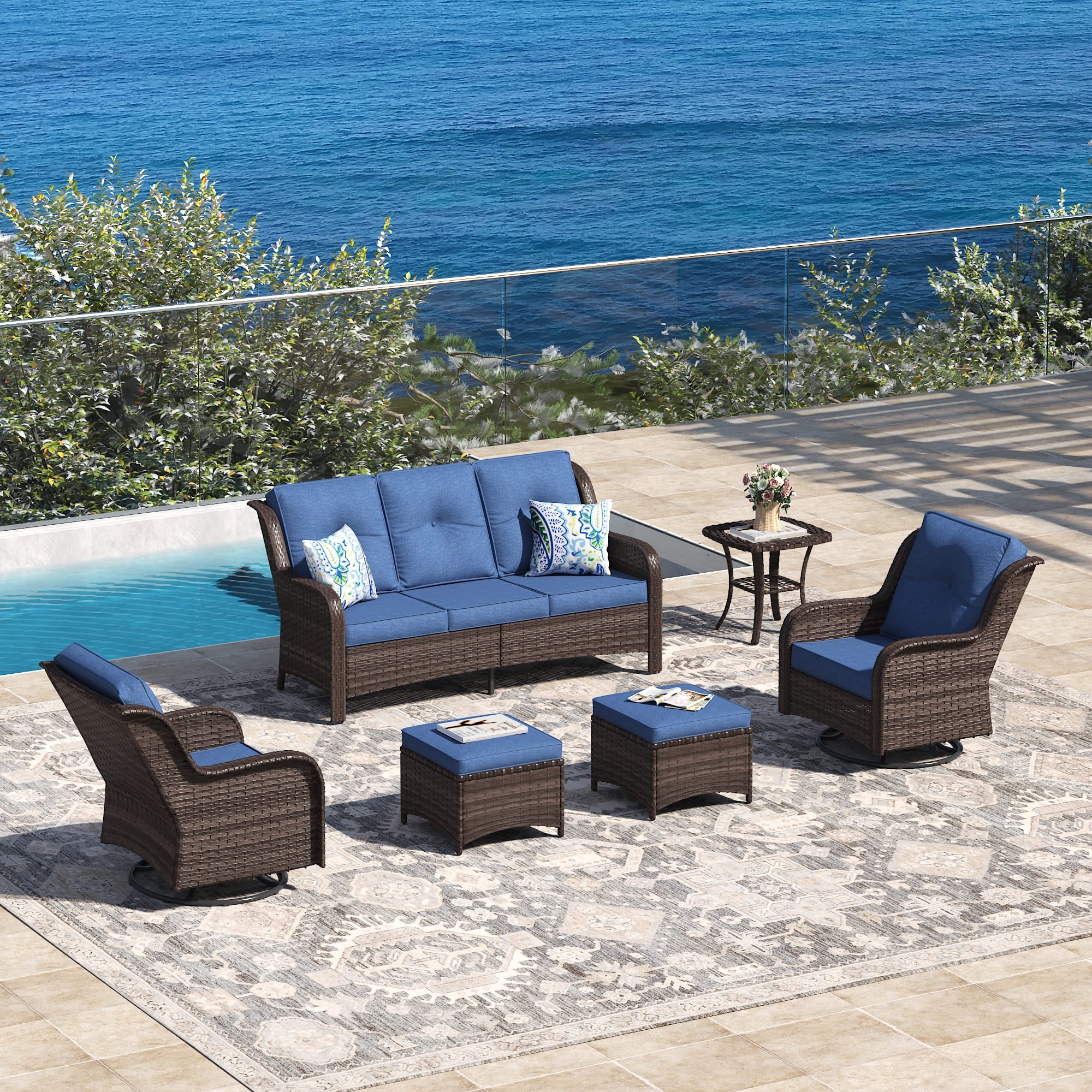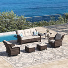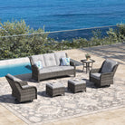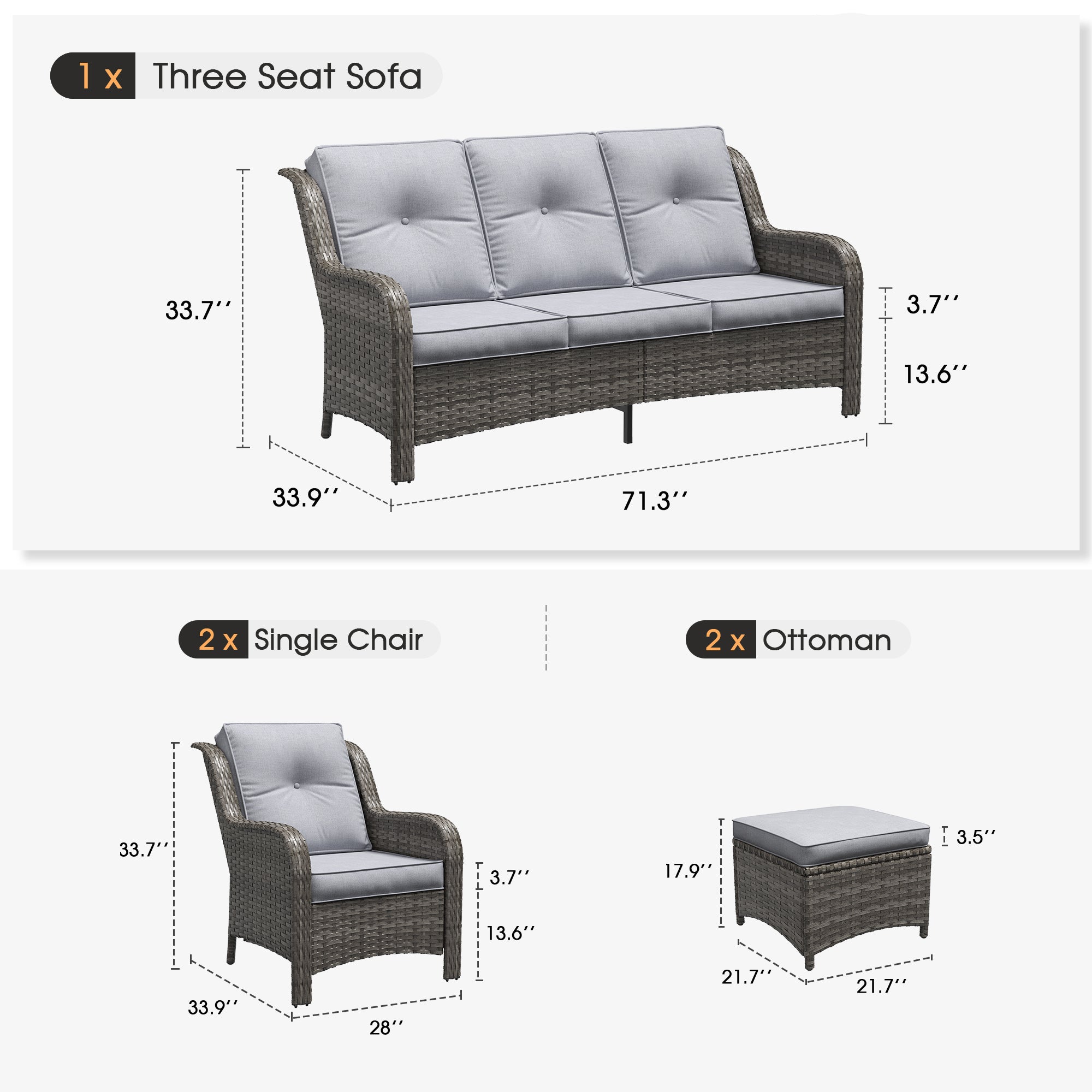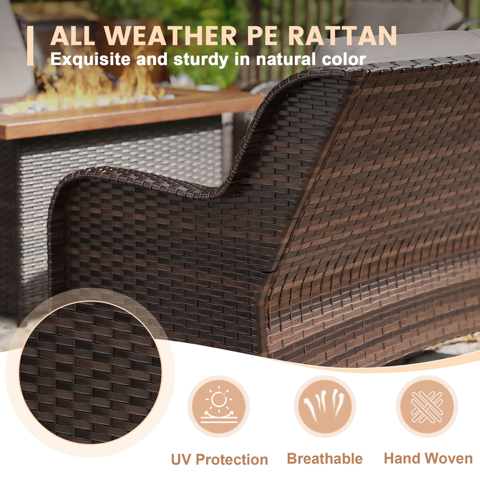 - 【Spacious Seating Space】The VICLLAX conversation set includes a 3-seat sofa, fire pit, single sofa chair, lover sofa and ottoman, catering to your family gatherings. High backrest is designed to offer exceptional support and comfort for your back. The stylish and modern shape complements your backyard, poolside or garden.