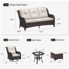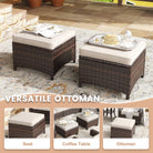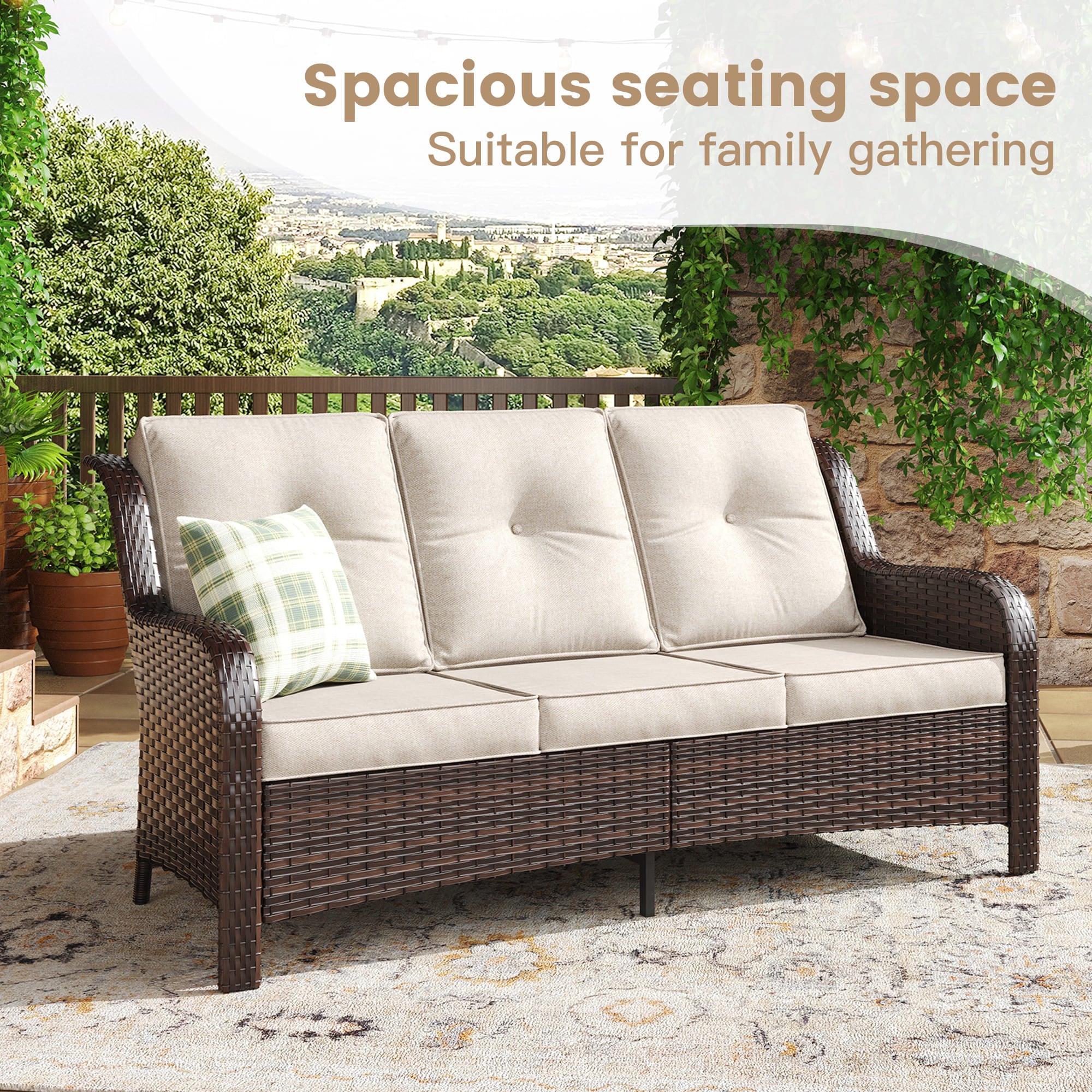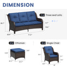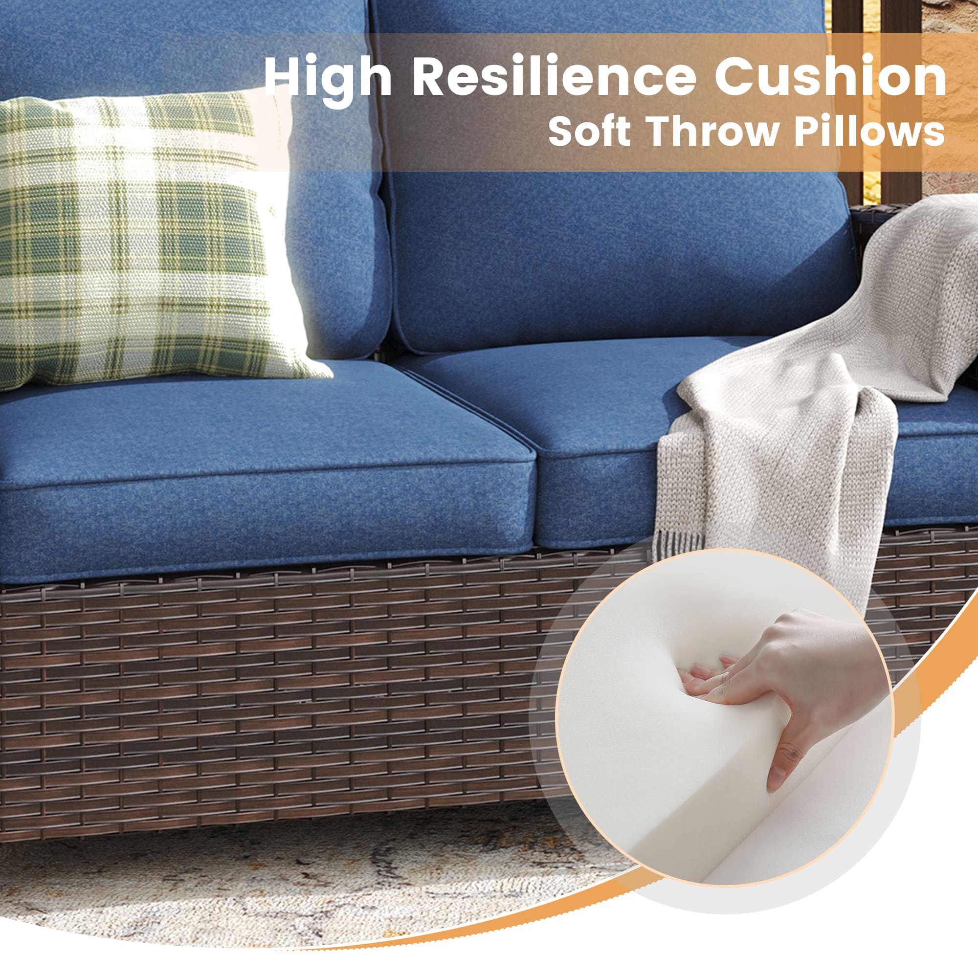 - 【Padded Soft Cushion】The rattan outdoor conversation set features a 3.7" thick cushion. High-quality Olefin fabric which has excellent water-repellent and stain-resistant properties, making them perfect for outdoor use. Equipped with highly resilient foam padding, these cushions offer you a cozy seating experience. Convenient zippered design, easy to remove for cleaning.