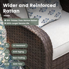 - 【Hand-Woven PE Rattan】Made of high-quality PE rattan material, not easy to fade. With excellent weather resistance, it ensures durability for year-round outdoor use. The breathable rattan construction guarantees a comfortable seating experience, keeping you cool and dry even under the hot sun.