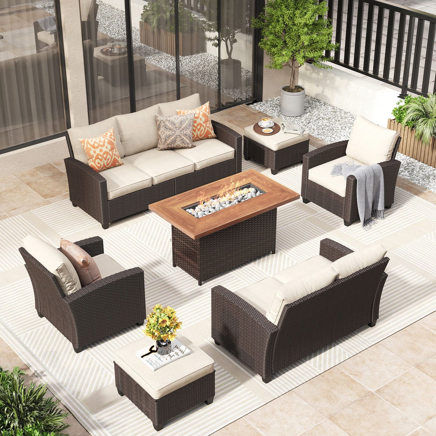 Vicllax Patio Sofa Set, Wicker Outdoor Conversation Set with Cushioned Sofa Chairs with Wicker Fire Pit, Stable Chair