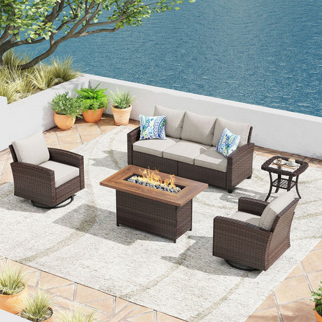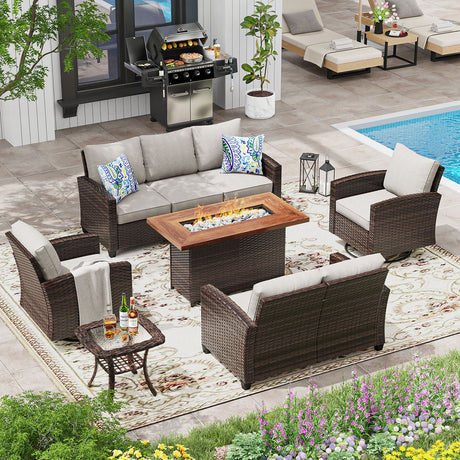 Vicllax Versatile Wicker Patio Set: 8 Pieces with Fire Table & Ottoman