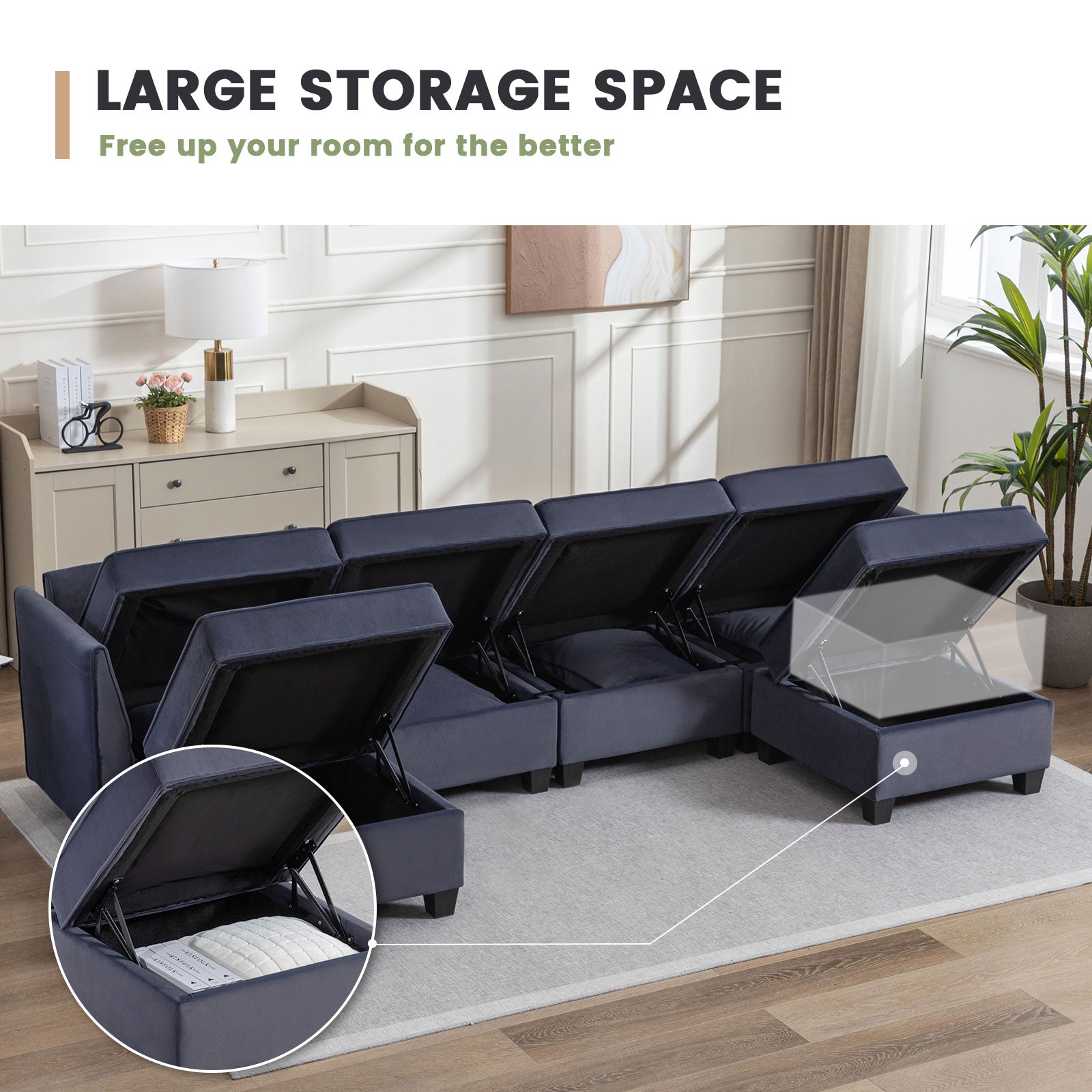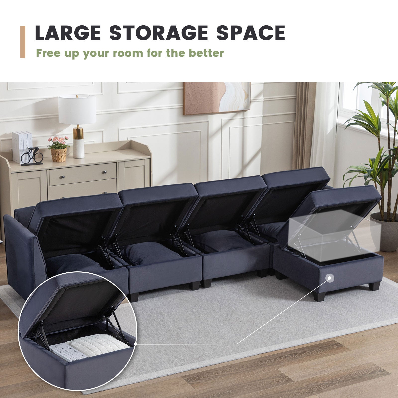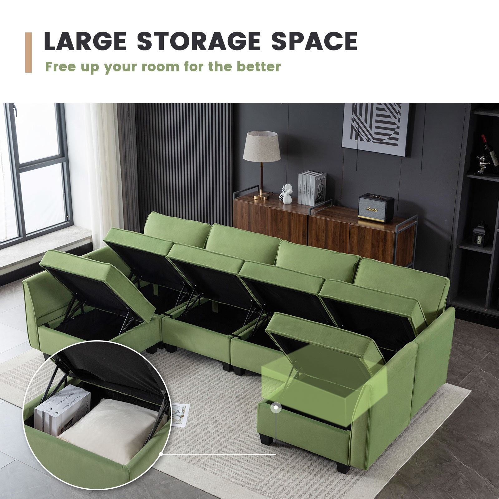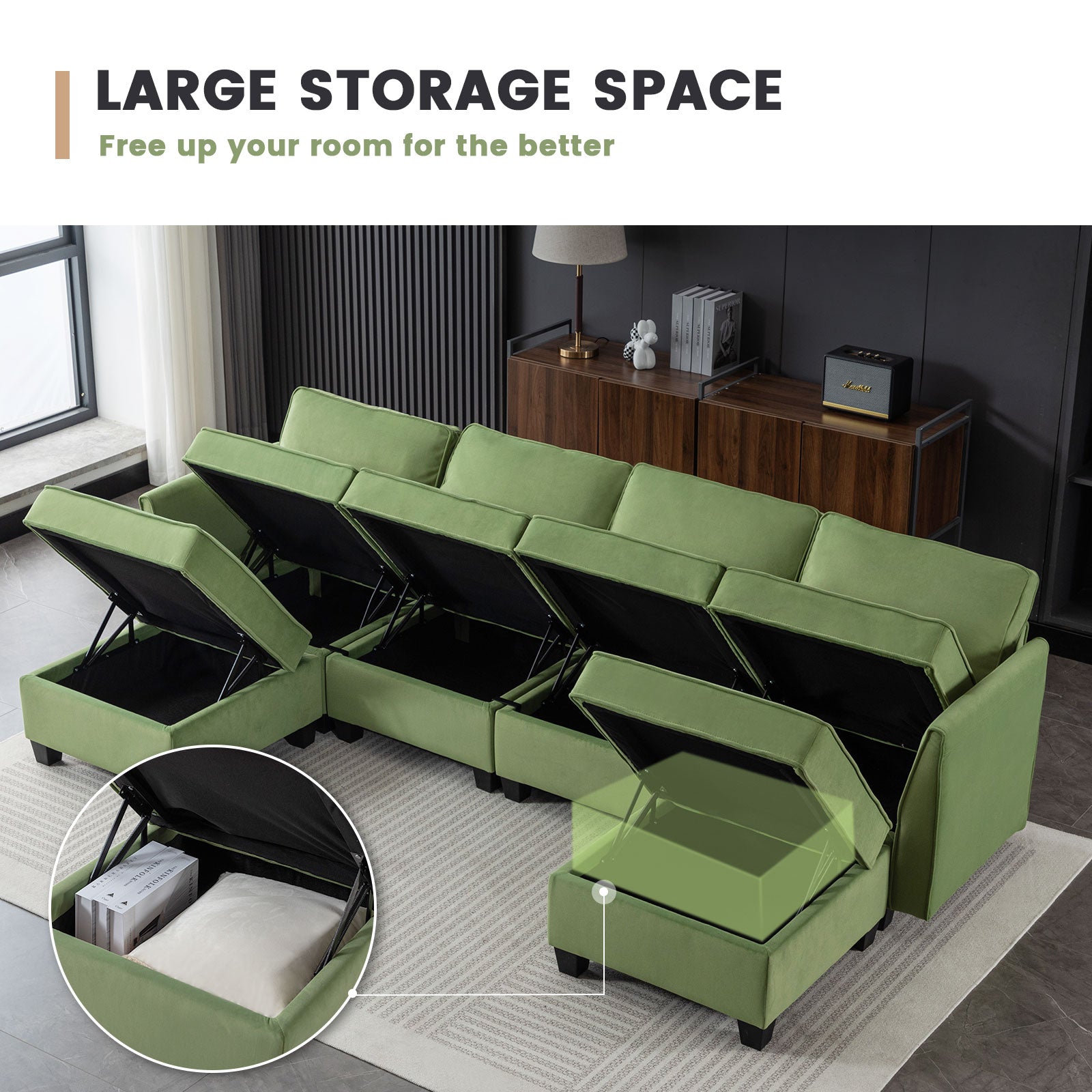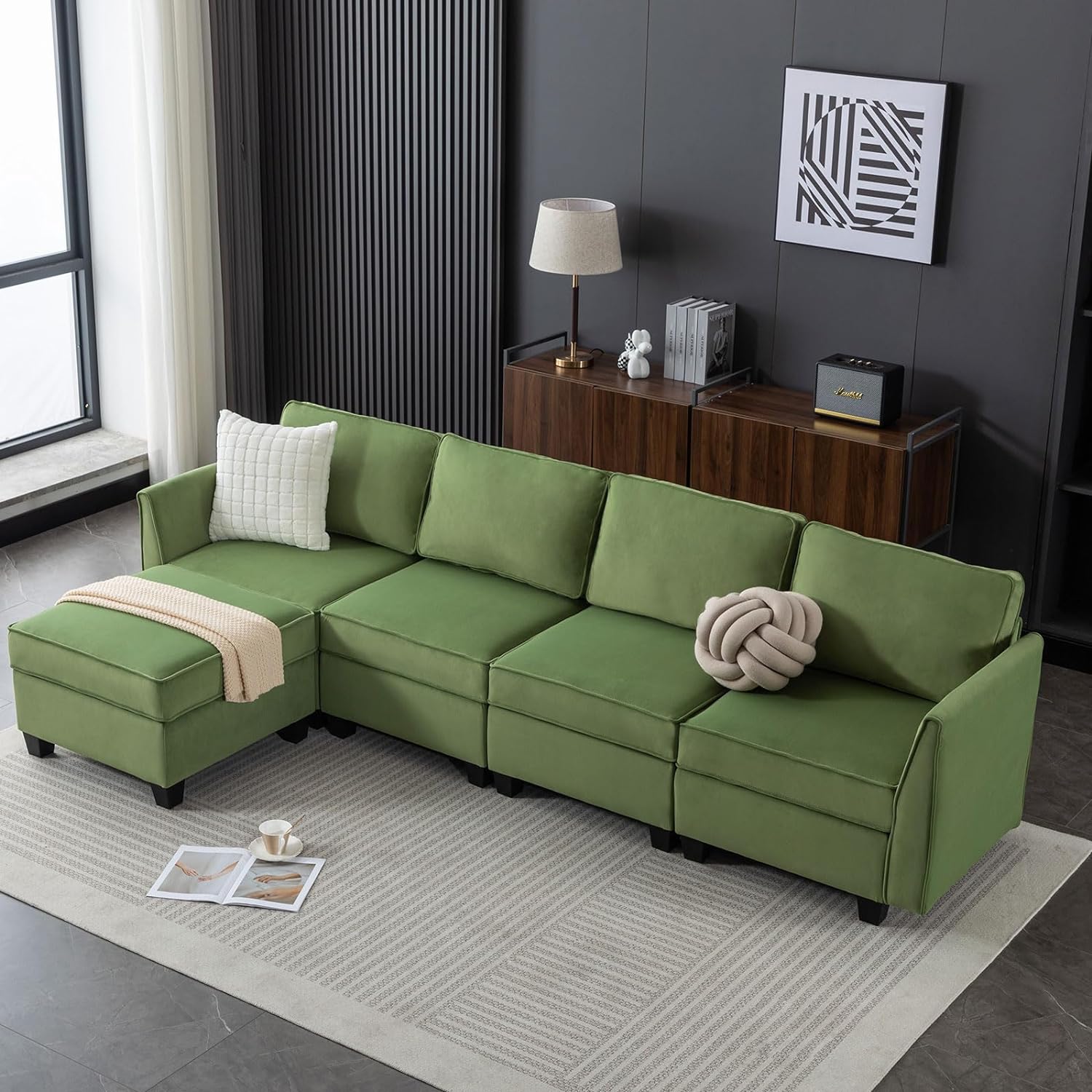 Sofá seccional modular de terciopelo Caleb con almacenamiento y chaise
