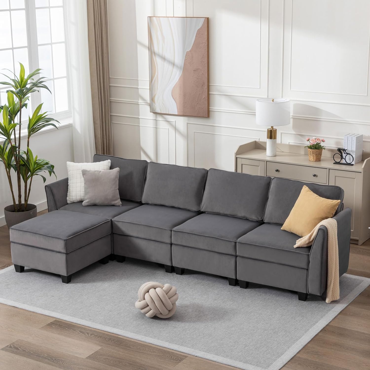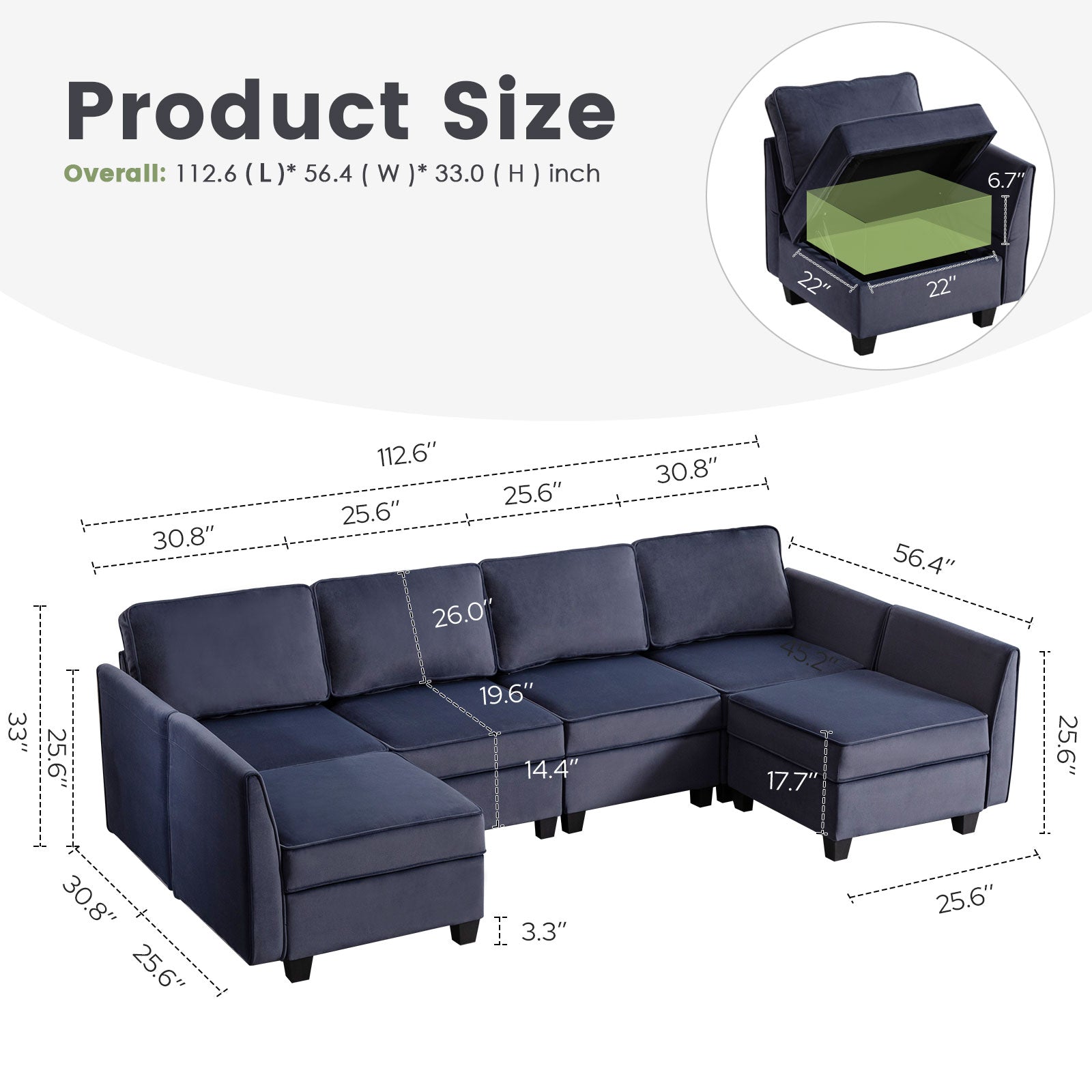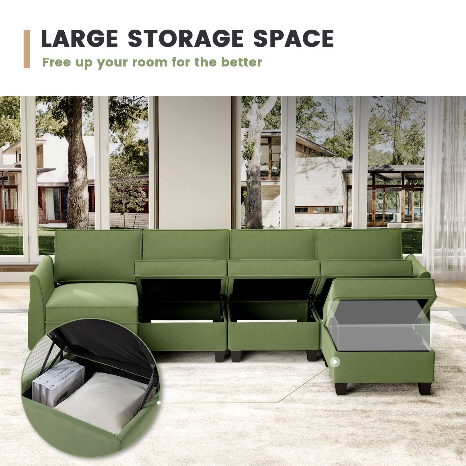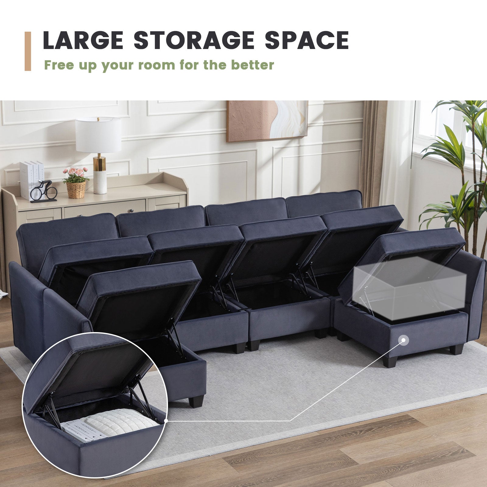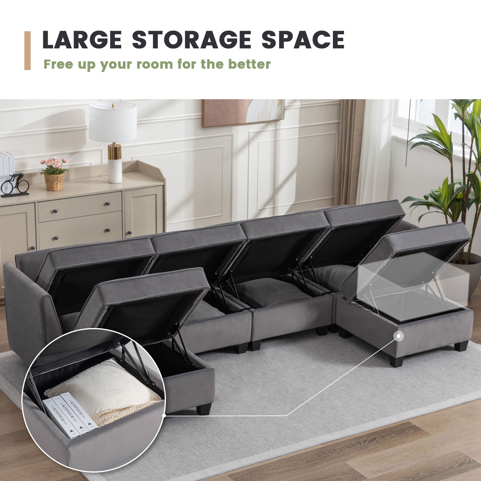 Sofá seccional modular de terciopelo Caleb con almacenamiento y chaise