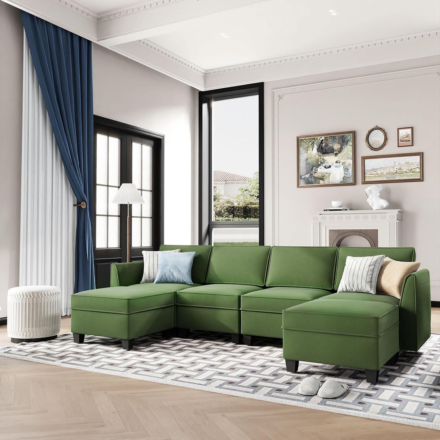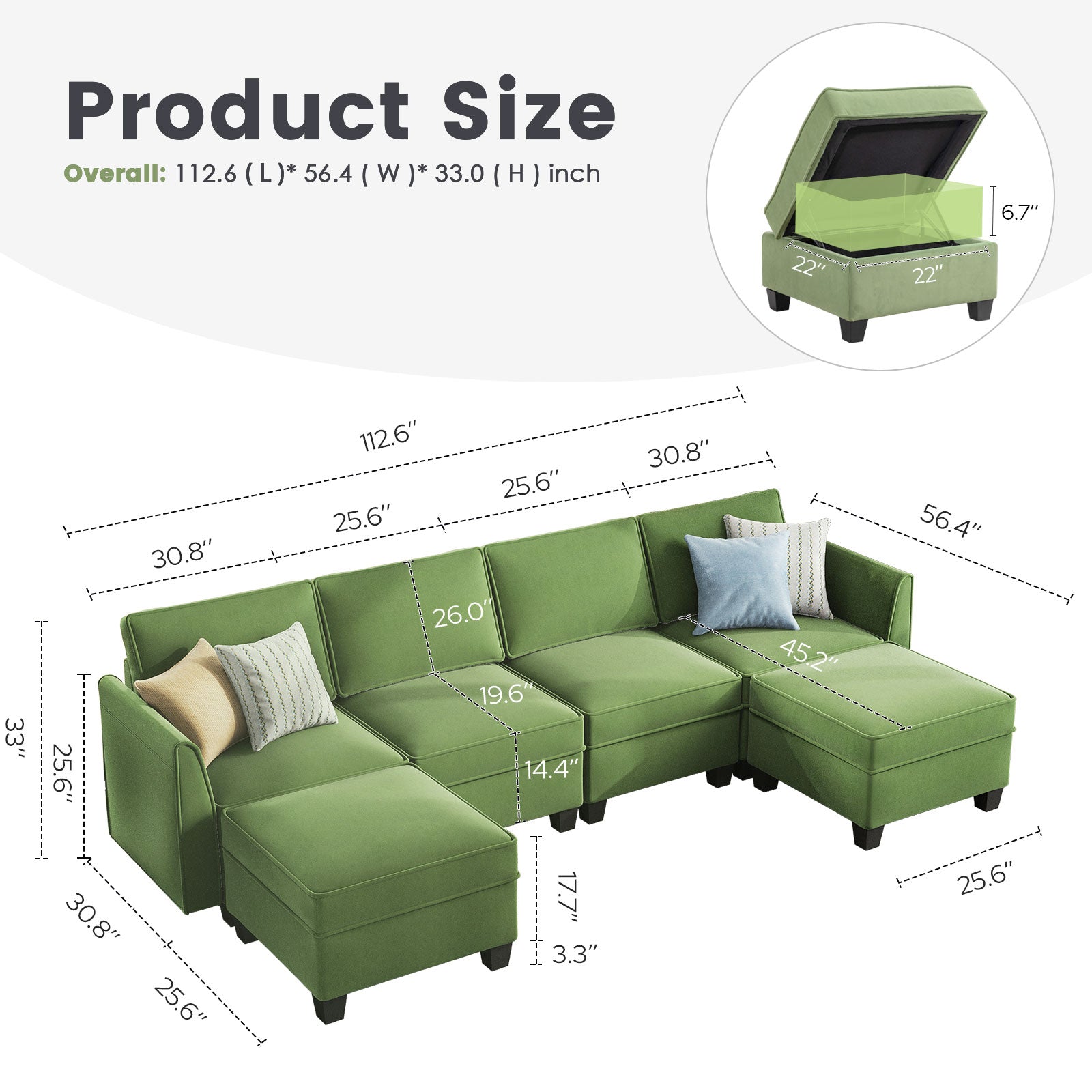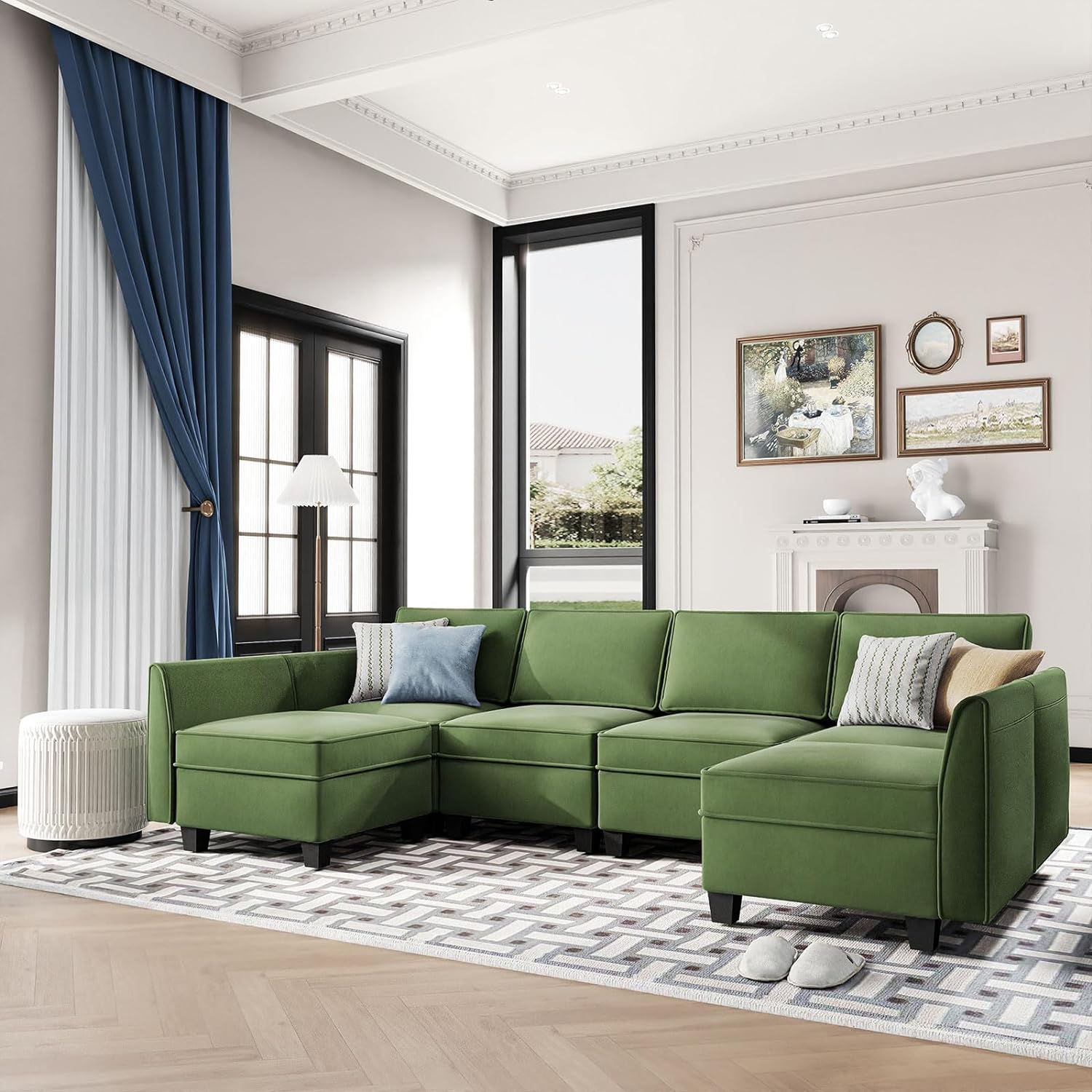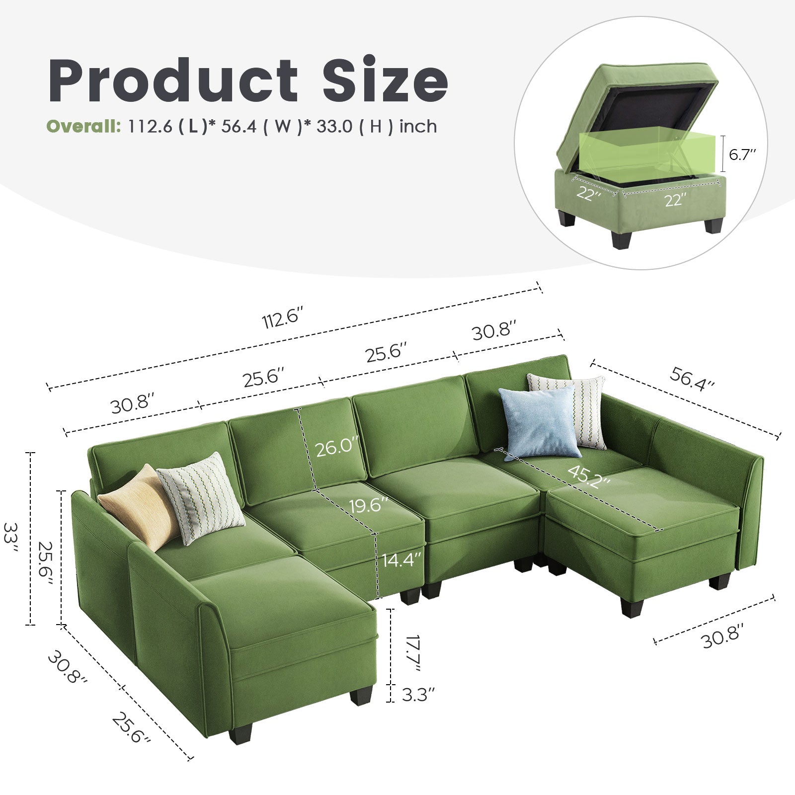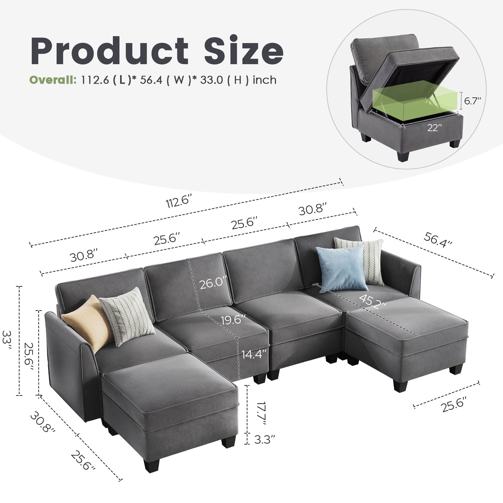 Sofá seccional modular de terciopelo Caleb con almacenamiento y chaise