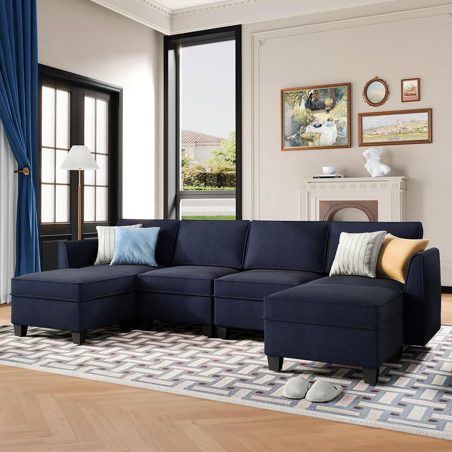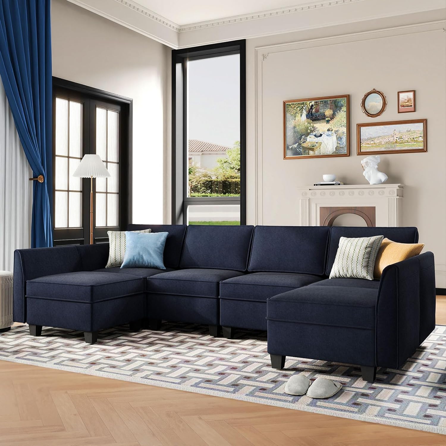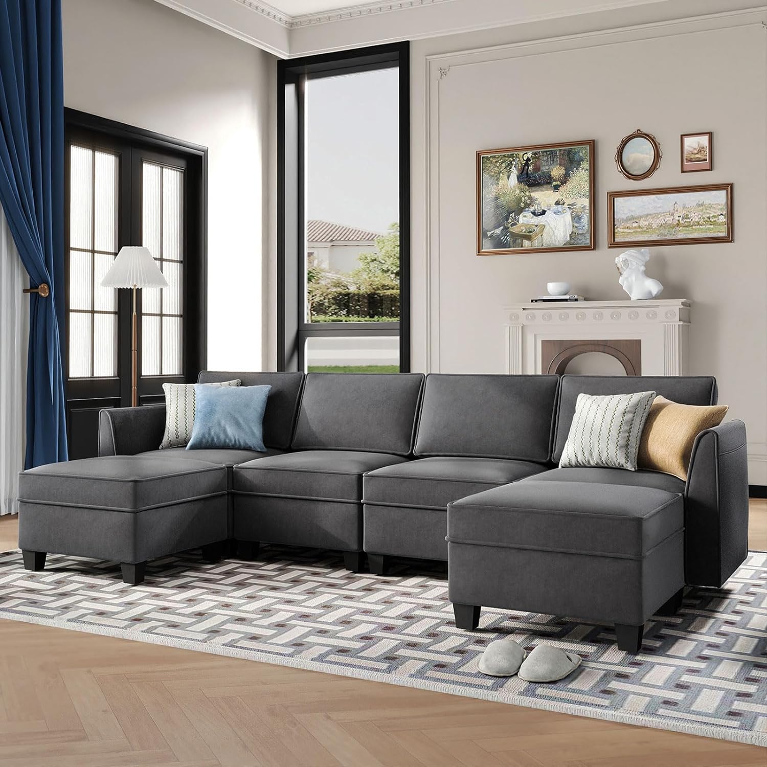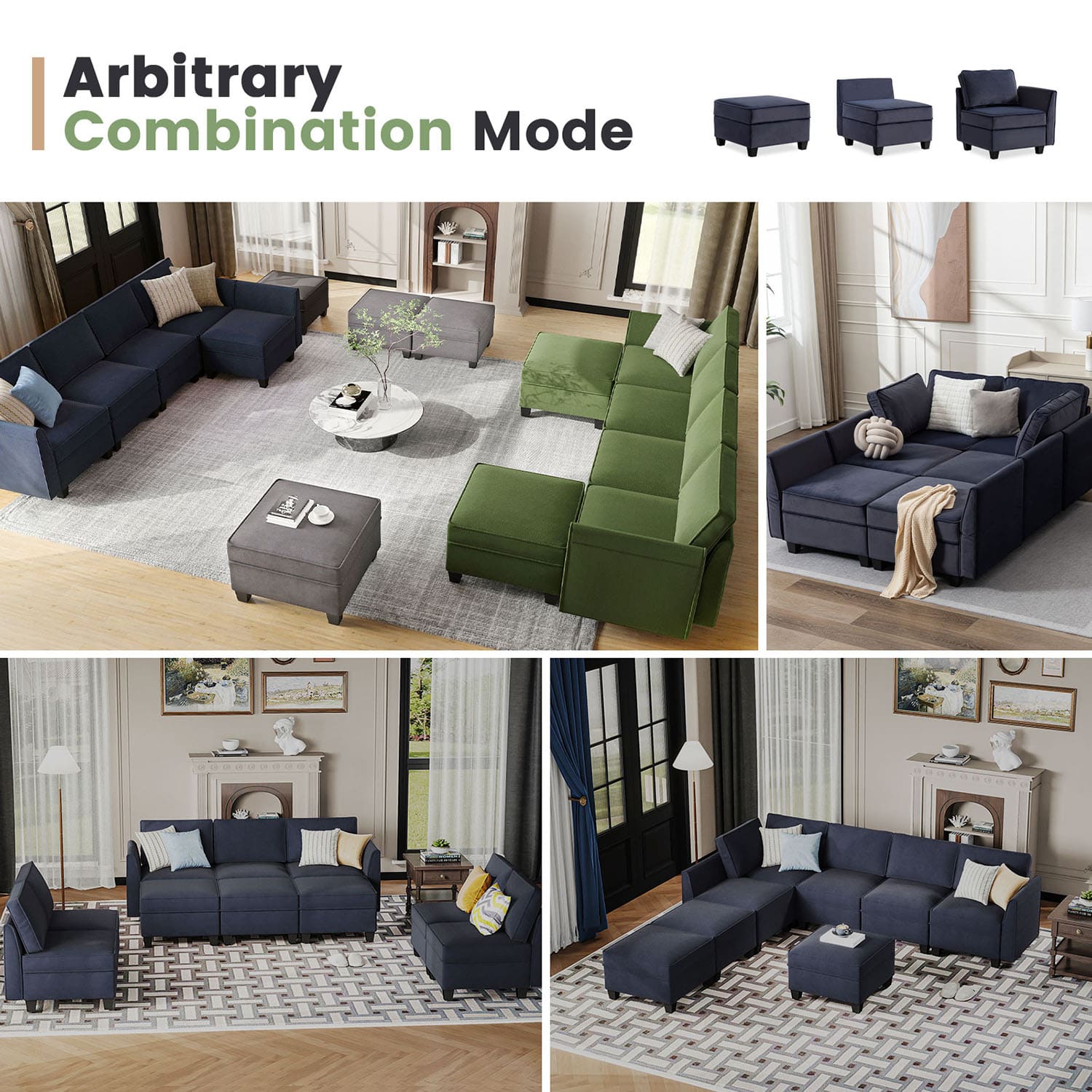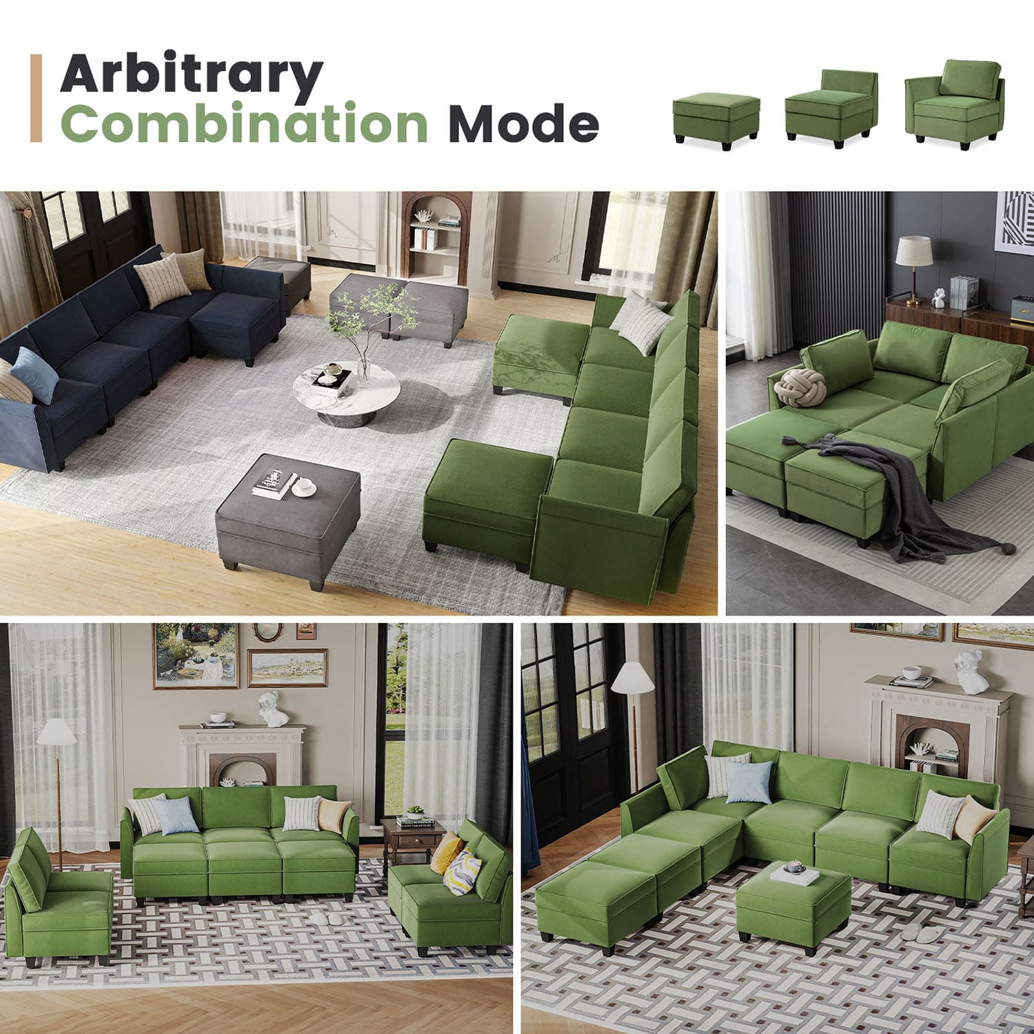 Sofá seccional modular de terciopelo Caleb con almacenamiento y chaise