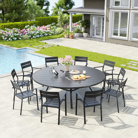 Mesa de comedor de escritorio Vicllax para exteriores de metal negro similar a la madera