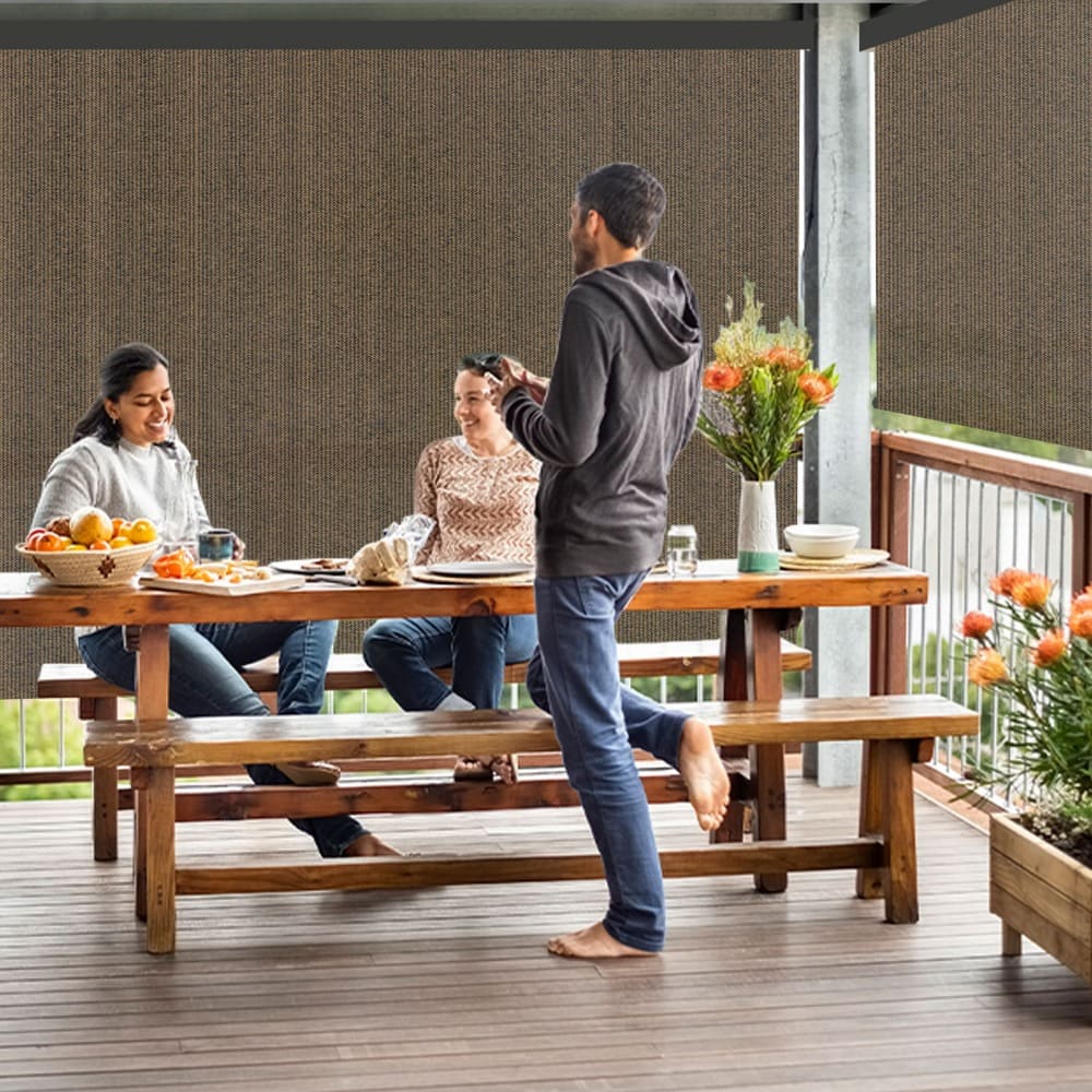 No es opaco pero aumenta tu privacidad y protección contra el sol. Ideal para patios, porches, pérgolas y terrazas. El exclusivo tejido de punto filtra la luz sin bloquear la vista, mientras que a otros les resulta difícil ver.