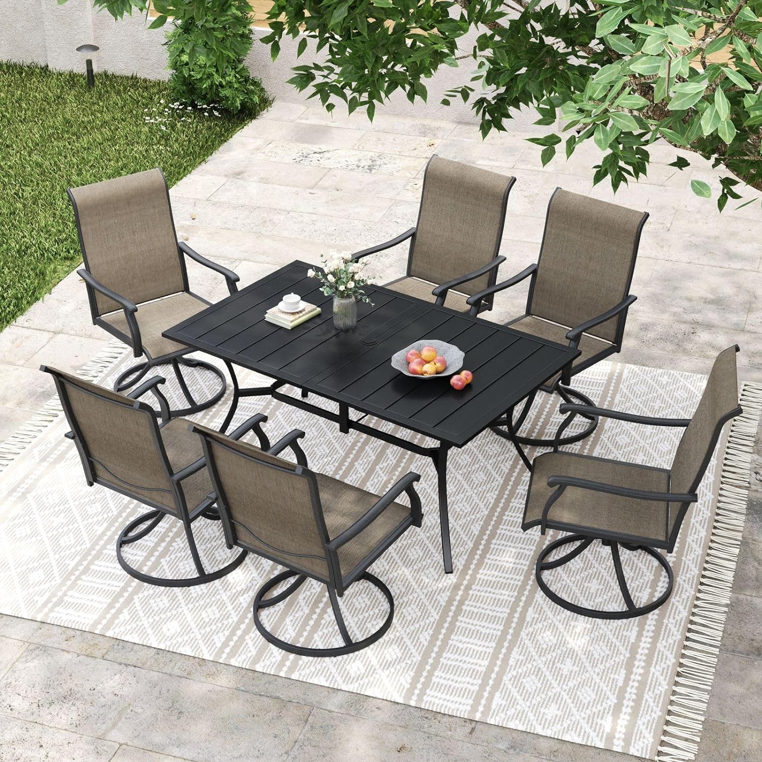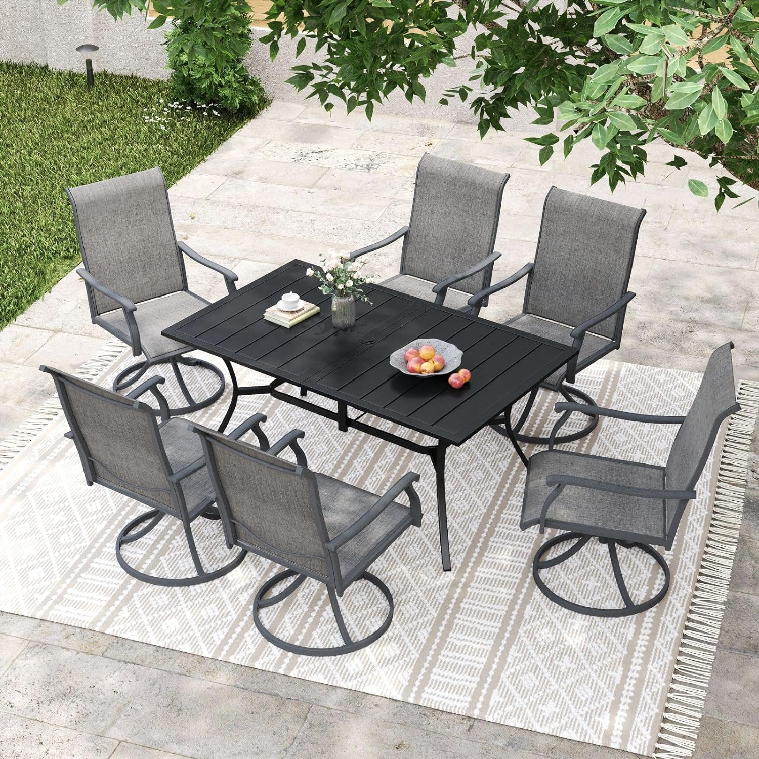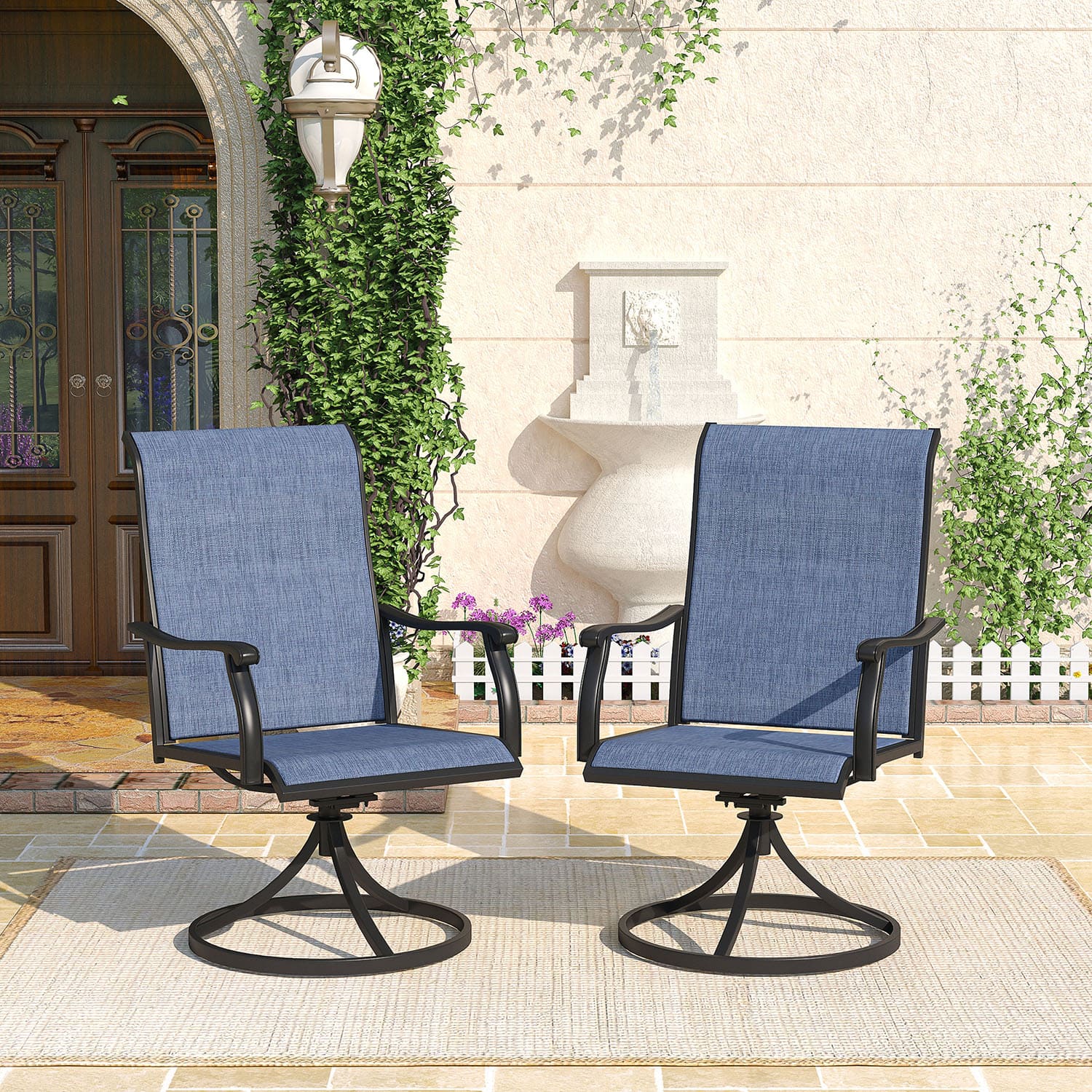 Vicllax Juego de sillas de comedor para patio de 2/4/6, silla de comedor giratoria para exteriores con respaldo alto
