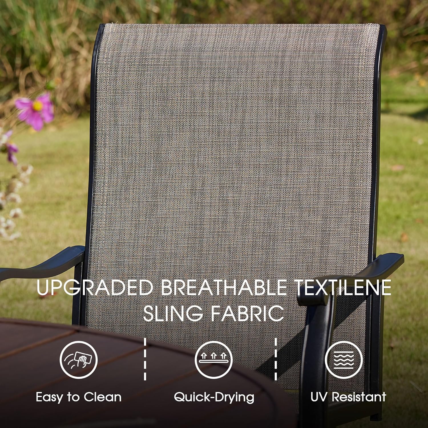 Nuestro marco de metal es resistente al agua con un revestimiento moteado superior reforzado para mayor durabilidad y resistencia al óxido, lo que brinda una protección excepcional contra los elementos para muebles de exterior u otras aplicaciones.